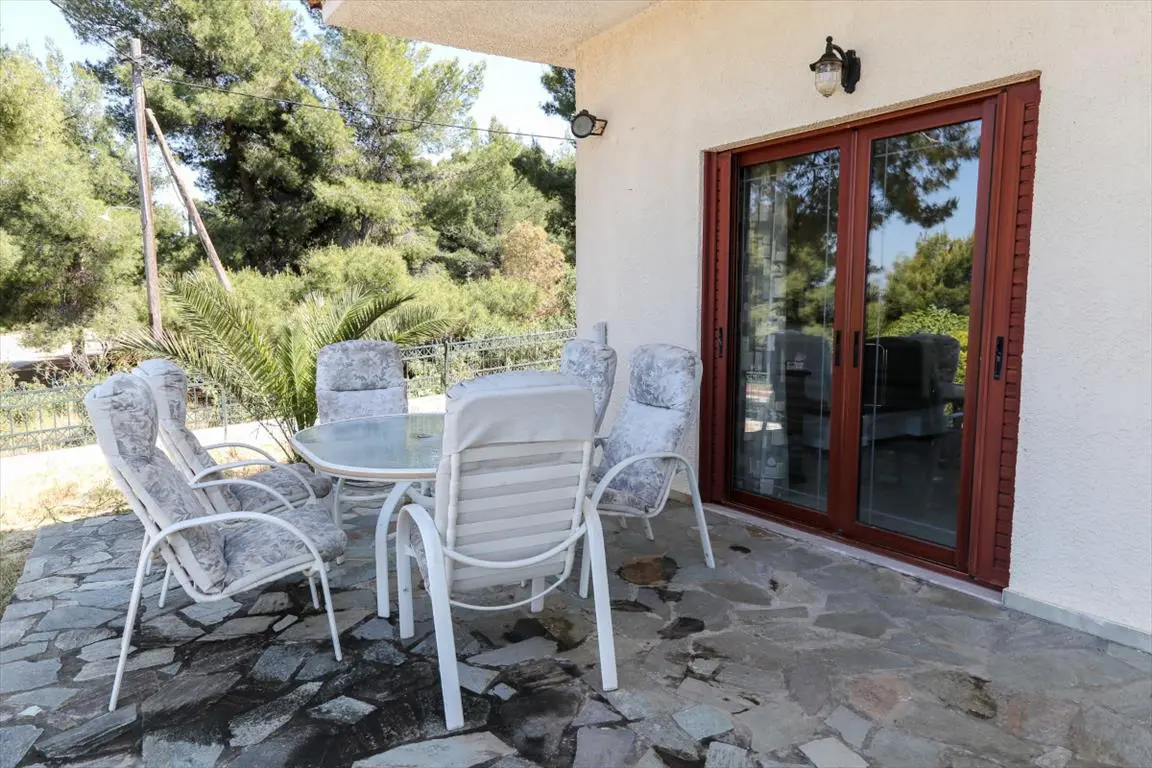 The house provides a view of the sea from its windows, enhancing the atmosphere with natural scenery. It includes essential amenities such as a fireplace and air conditioning to ensure comfort year-round. For outdoor living, there’s a barbecue area perfect for gatherings.