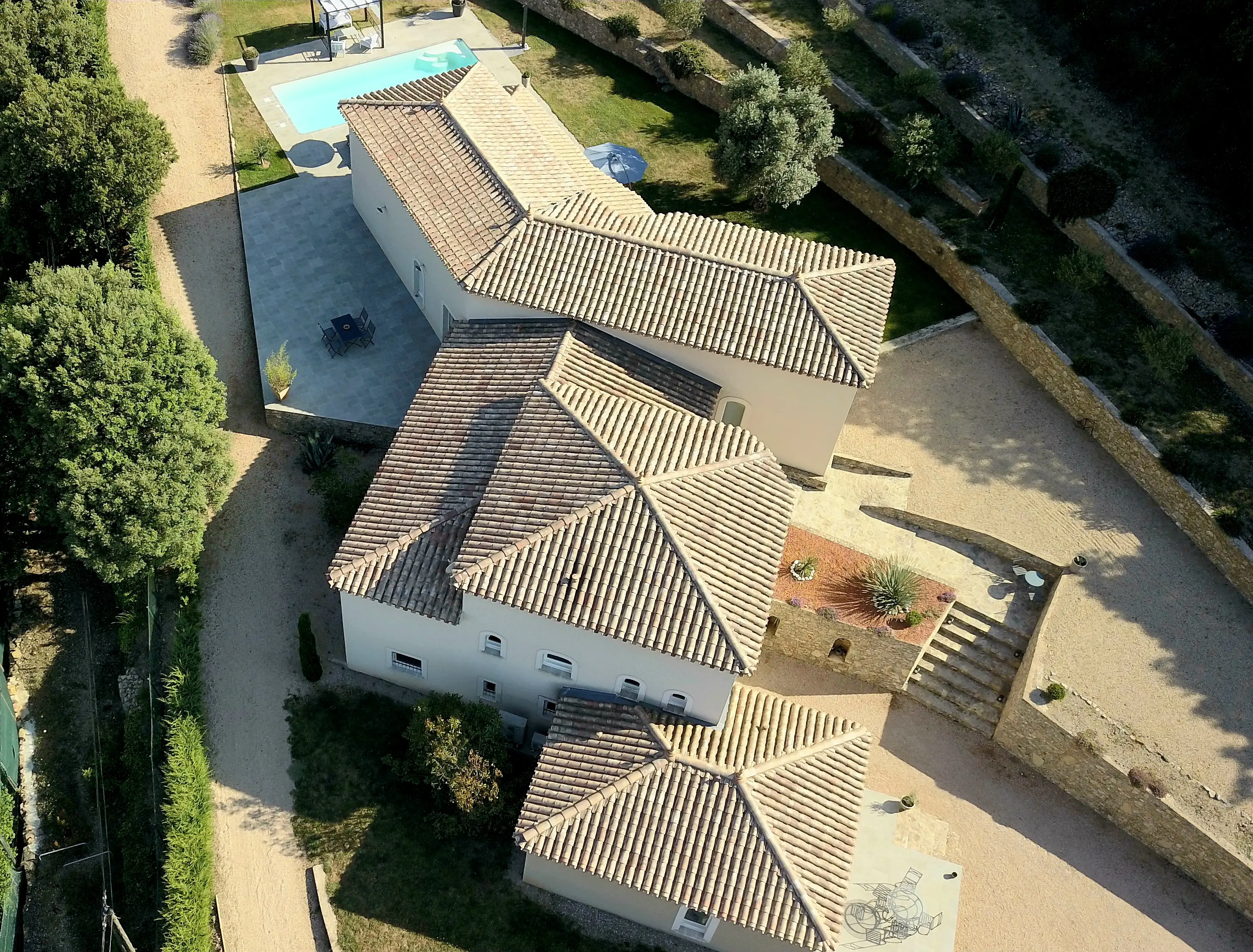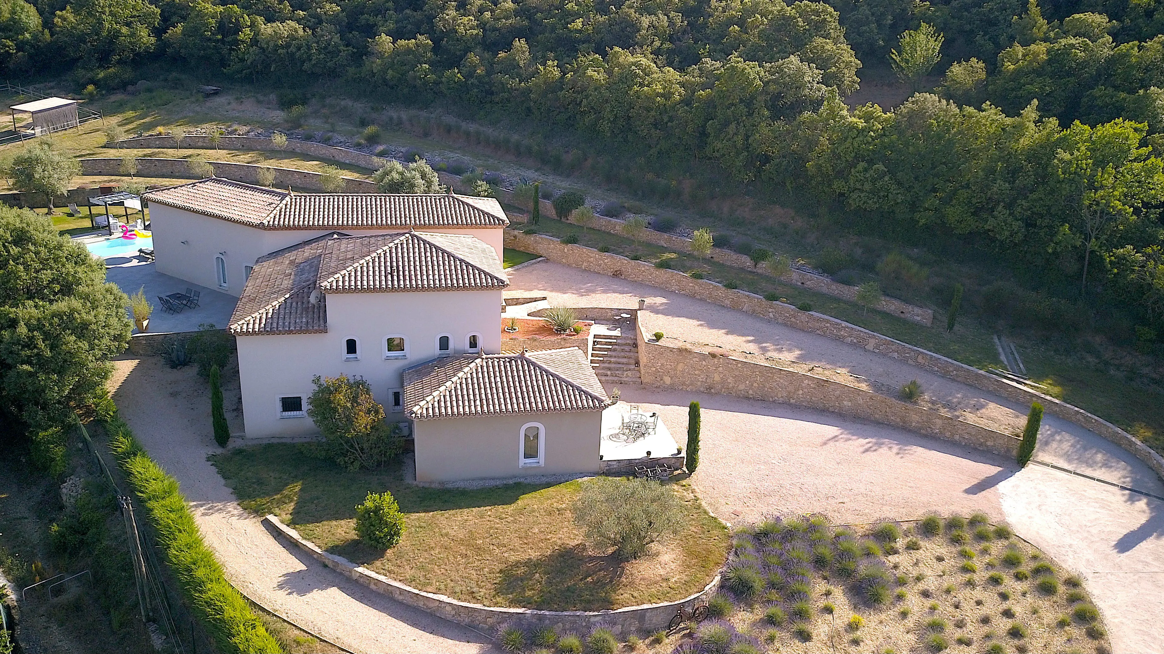Charming hamlet in the Parc naturel regional du Haut-Languedoc located 5 minutes from Herepian (vibrant village with all amenities), 10 minutes from Lamalou-les-Bains, 40 minutes from Lac du Salagou and 50 minutes from the beaches ! Superb high-end single storey villa (built in the 2000s), the main residence offers a living area of 200 m2, comprising a vast light-filled living space with a cathedral ceiling of over 5 meters height, a dining area, a lounge and a fully equipped open-plan kitchen with adjoining laundry room. Sleeping quarters : 3 bedrooms in total, including a magnificent master suite with dressing room and private bathroom, plus an additional shower room for guests.In addition, there is a fully independent 40 m2 guest cottage comprising (one bedroom, a shower room, a living area with fully equipped open-plan kitchen and its own private terrace). Ideal for guests or for seasonal rental opportunities ! Also featuring a garage space of over 140 m2. All set within magnificent, beautifully landscaped grounds of 5500 m2 with 25 olive trees, a lavender field, several terraces, handcrafted dry-stone walls, a south-facing swimming pool, horse stalls – a true haven of peace in the heart of nature ! Quality features throughout ! Basement = Large garage of over 140 m2 with electric gate. Main house of 200 m2 Ground = Entrance hall of 6.63 m2 with cupboard and door with staircase leading down to the garage + superb living area of over 110 m2 with a spectacular cathedral ceiling of above 5 metres, this space is bathed in natural light thanks to its large french windows offering views over the swimming pool and olive trees + lounge area, dining area and fully equipped open-plan kitchen (central island bar, coffee machine, dishwasher, microwave, electric oven, american-style fridge freezer, double sink, induction hob, extractor hood, ample storage) + pantry/laundry area + WC with hand basin of 3.14 m2 + corridor of 8 m2 + master suite of 35 m2 comprising an 18 m2 bedroom (picture window opening onto the exterior), a 2.70 m2 hallway, a 5 m2 dressing room and its fully tiled en-suite bathroom of 9 m2 (bathtub, double vanity unit, heated towel rail) and separate WC of 1.68 m2 + shower room of 4.55 m2 with Italian stones (walk-in shower, exquisite washbasin from Turkey) + bedroom of 12.45 m2 + bedroom of 10.51 m2. Fully independent 40 m2 guest cottage Ground = 20 m2 living area/fully equipped open-plan kitchen (electric oven, electric hob, sink, extractor hood, refrigerator and french window opening onto private terrace) + 3 m2 hall + 3 m2 shower room (walk-in shower, vanity unit) + WC of 1.60 m2 + 10 m2 bedroom with built-in wardrobe. Exterior = Magnificent landscaped grounds of 5500 m2 offering spectacular views over the surrounding hills + 25 olive trees + lavender field + automatic irrigation system + beautiful central driveway + superb handcrafted dry-stone walls + outdoor lighting + south-facing 9 x 4.5 m chlorine swimming pool with outdoor shower + horse stalls + several terraces. Additional features = Double glazing + electric roller shutters + underfloor central heating with heat pump for the main house and reversible air conditioning + electric heating for the guest cottage + tiled flooring and wooden parquet + connected to mains drainage + estimated amount of annual energy consumption for standard use: between 1920 Euros and 2660 Euros per year. Average energy prices indexed on 2021, 2022 and 2023 (including subscriptions) + annual property tax of 2200 Euros + possibility to negotiate furniture. Price = 665.280 Euros (Splendid ! A must see !) The prices are inclusive of agents fees (paid by the vendors). The notaire’s fees have to be paid on top at the actual official rate. Information on the risks to which this property is exposed is available on the Geo-risks website: georisques. gouv. fr Property Id : 80490 Property Size: 240 m2 Property Lot Size: 5,500 m2 Bedrooms: 4 Bathrooms: 3 Reference: TH665280E Other Features Immediately Habitable Latest properties Outside space Prestige Private parking/Garage Rental Potential Swimming Pool Terrace With Land/Garden