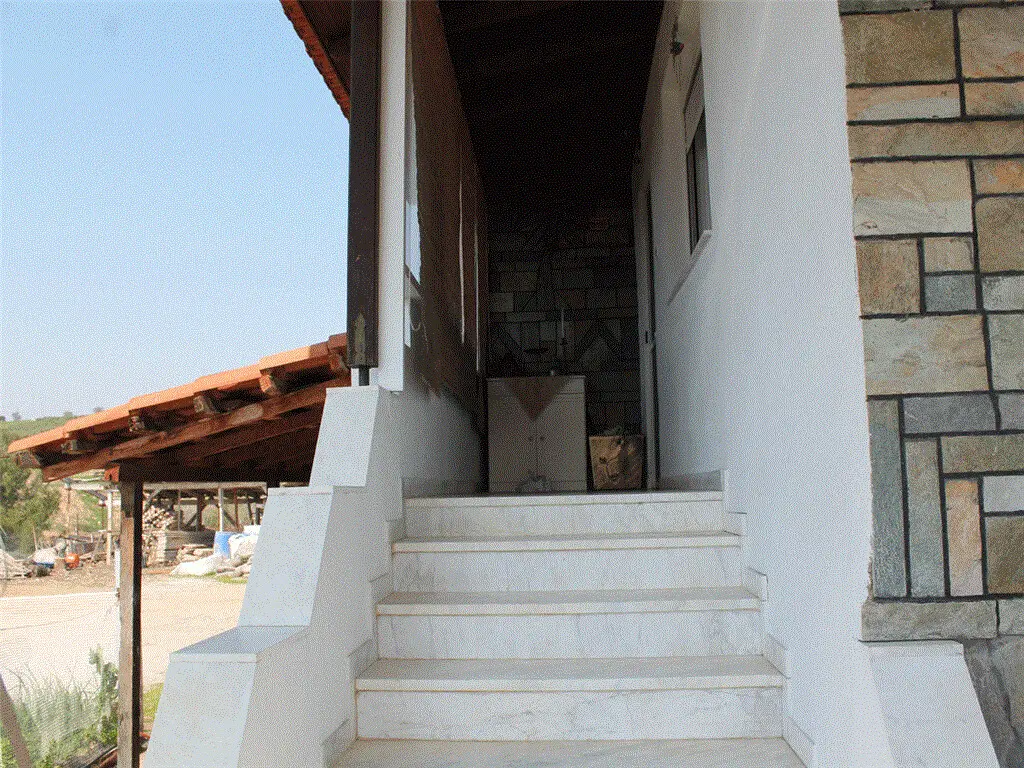 Located in the suburbs of Thessaloniki, this one-storey house covers an area of 270 square meters. It features a straightforward layout with two bedrooms, a living room that includes a kitchen area, and one WC. Ideal for those looking for functional living space in a suburban environment.