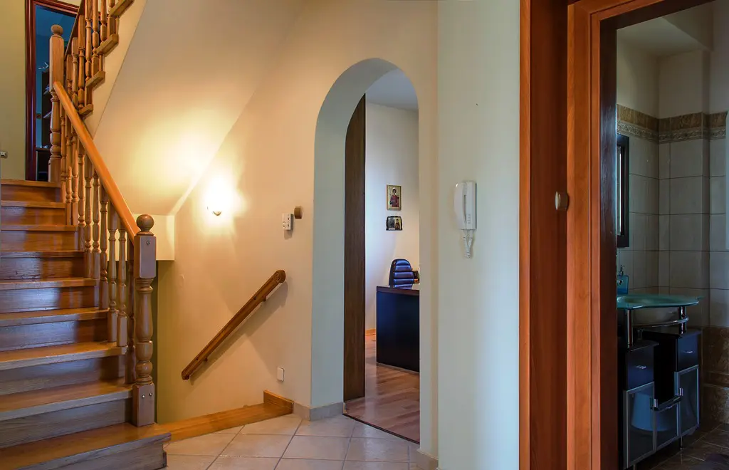 Moving up to the first floor, you will find three bedrooms, a bathroom, and a storeroom. This level is ideal for creating separate sleeping quarters, providing additional privacy for family members or guests.