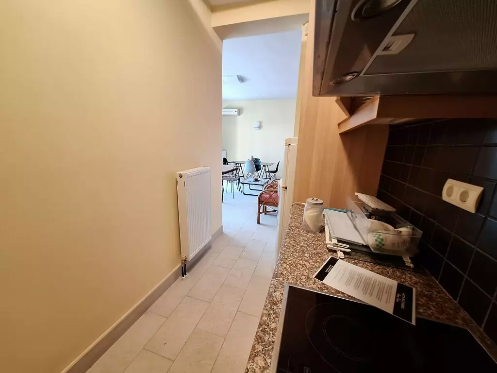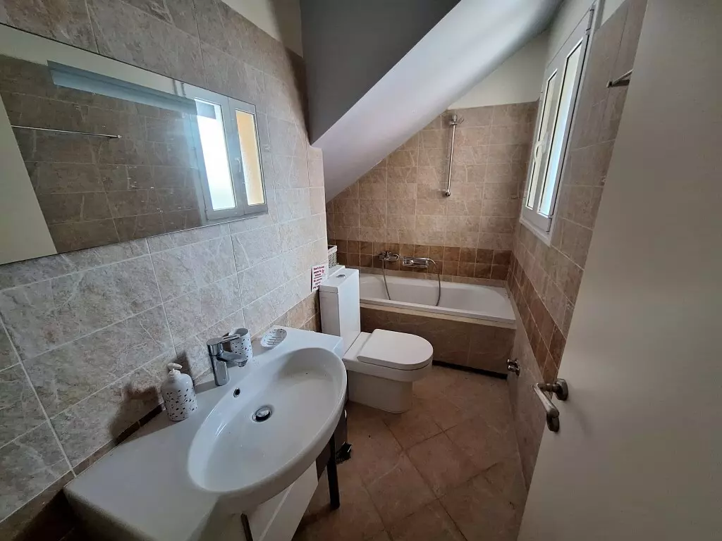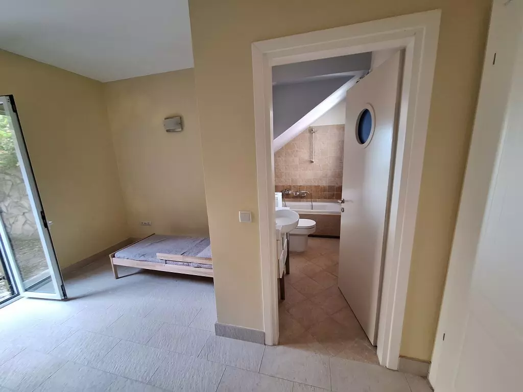 The ground floor of the home includes one bedroom, a living room, a kitchen, and a bathroom. This level serves as a practical area for everyday activities, ideal for guests or as a main living space.