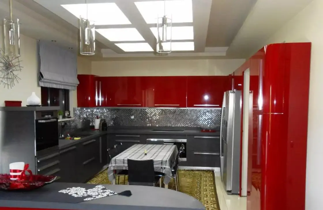 The first floor comprises four bedrooms and three bathrooms. This arrangement provides ample private space for families or guests, ensuring comfort and convenience.