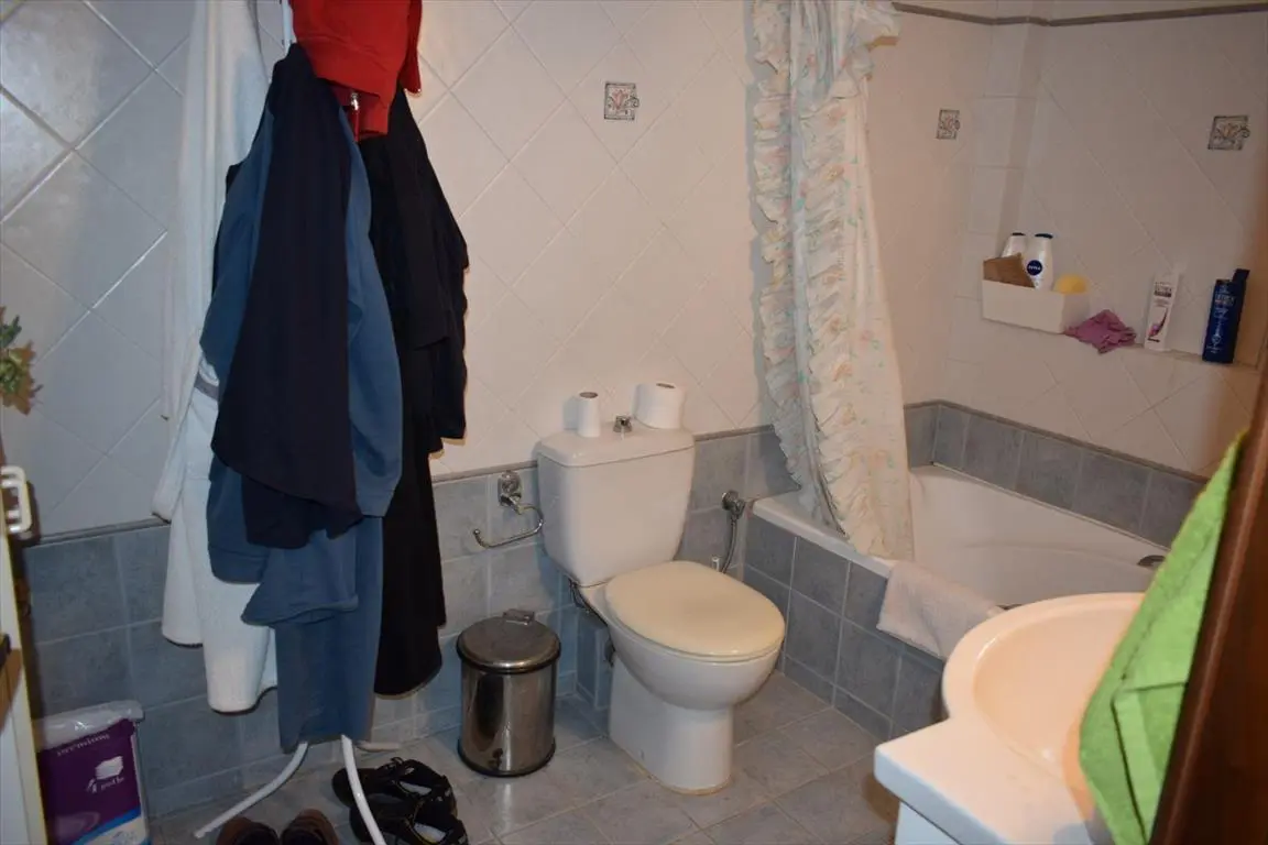 This 3-storey house in the suburbs of Thessaloniki spans 400 square meters and offers ample living space. It features a semi-basement with one bedroom, a living room connected to the kitchen, a bathroom, and a storeroom. The ground floor includes another bedroom, a living room, a kitchen, a bathroom, and a WC. Finally, the first floor has three bedrooms, an additional kitchen, and two bathrooms.