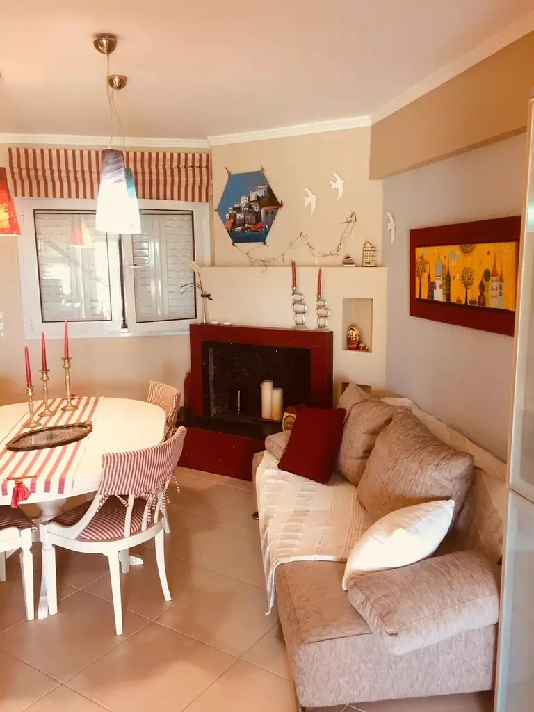 The property is equipped with solar panels for water heating, a fireplace, and air conditioning. Additional features include awnings and a dedicated heating system. Outside, there is a barbecue area perfect for outdoor cooking.