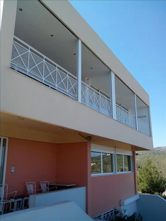 This three-storey house in Attica offers 500 square meters of living space. It provides ample room for various arrangements, making it suitable for families or groups seeking extensive accommodation.