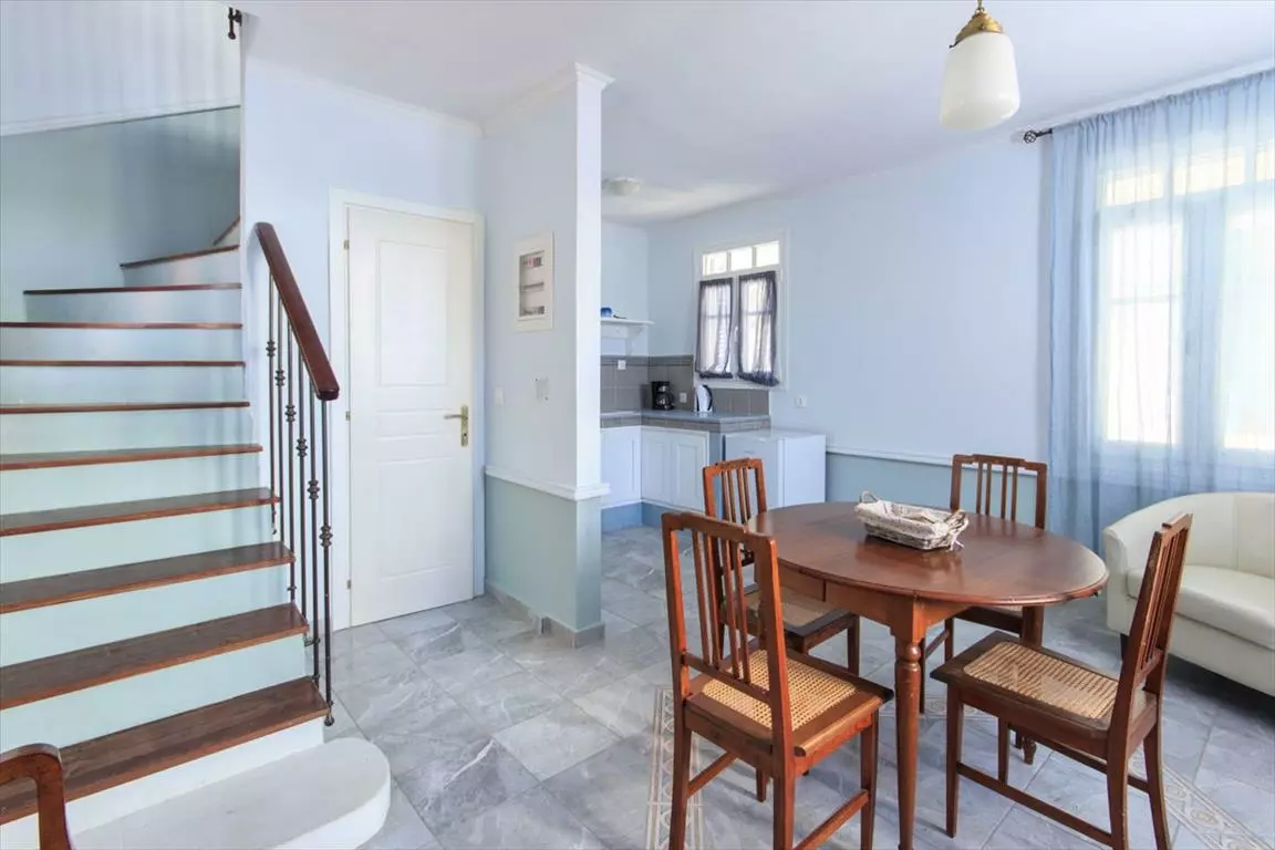 Discover a three-storey house for sale on the island of Thassos, offering 120 square meters of living space. This property features a semi-basement, a ground floor, and a first floor, catering to various living needs. Its layout includes a living room in the semi-basement, a combined living room and kitchen on the ground floor, and two bedrooms on the first floor.