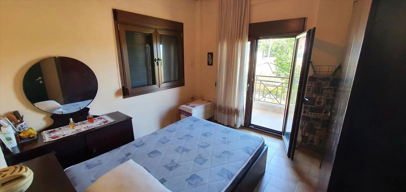 One of the notable features of this property is the fireplace, offering a functional heating solution during cooler months. Air conditioning is also included, providing comfort during the hot summer days, which can be particularly valuable in a coastal area like Chalkidiki.