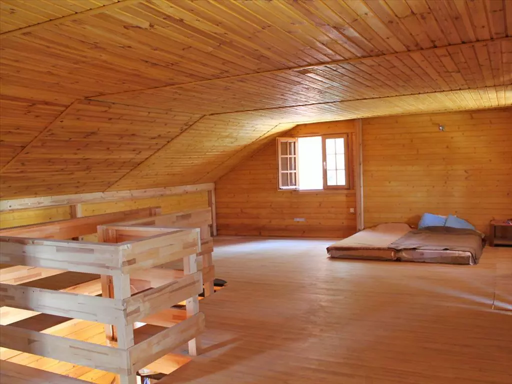 The ground floor of the house includes three bedrooms, a living room that connects with the kitchen, and a shower with a WC. This design allows for functional everyday living, with ample space to accommodate various needs.
