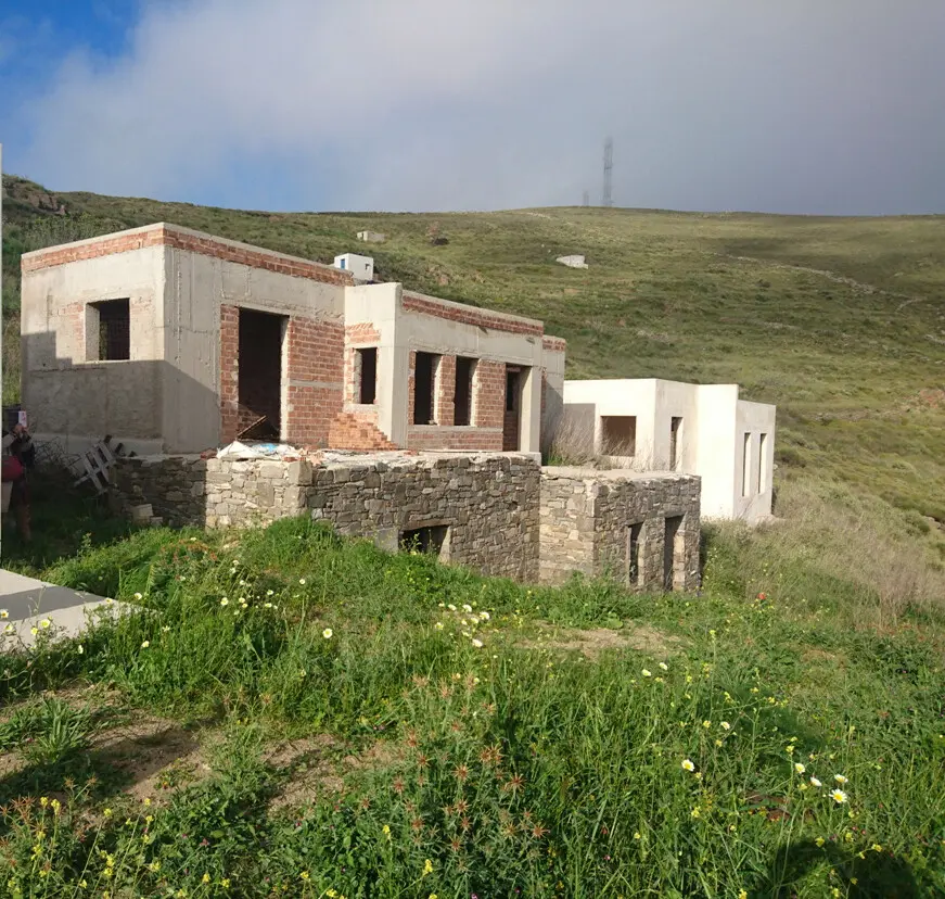 Available for sale is a two-storey house currently under construction, located in the Cyclades. This property spans an area of 100 square meters.