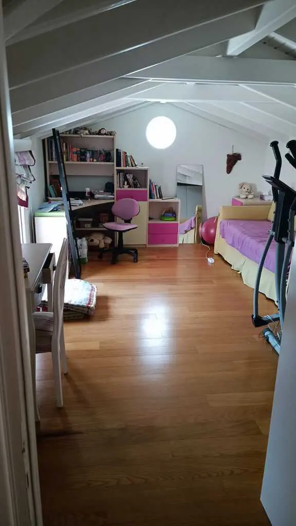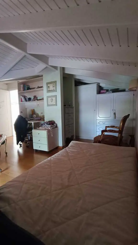 On the second floor, there are three bedrooms and an additional living room with a kitchen. Here, you also have a bathroom and a storeroom, providing ample storage and flexible living or working options.