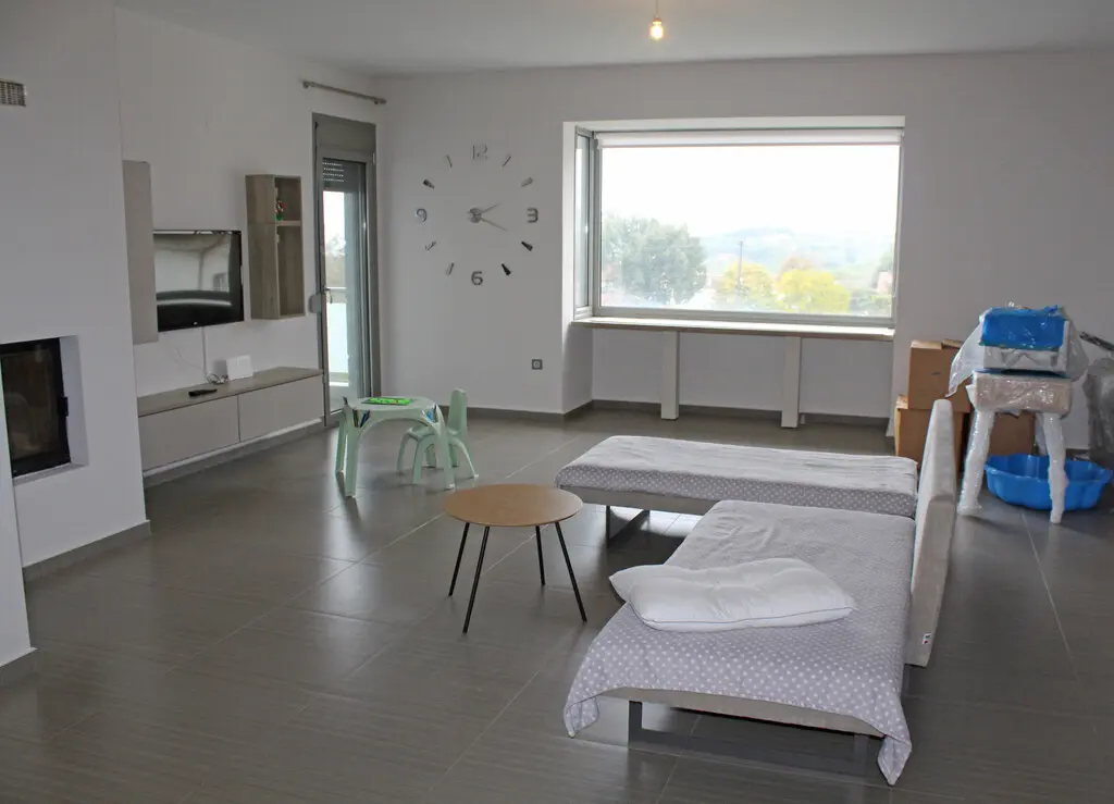 Moving to the first floor, you will find four additional bedrooms, another living room with a kitchen, and two shower WC facilities. Again, this layout offers a good amount of space for a larger family or group. The second living area can serve multiple purposes, whether for relaxation or dining.