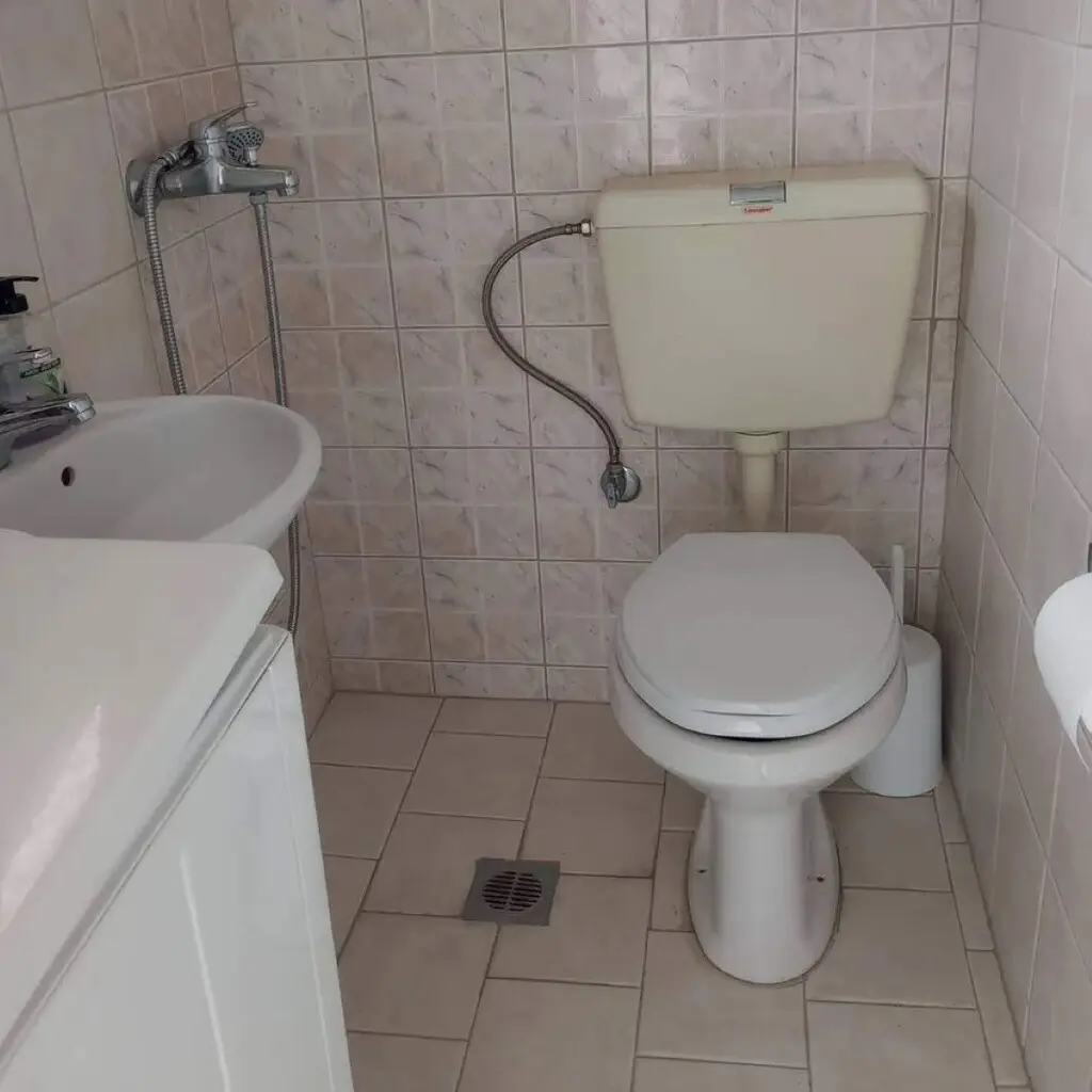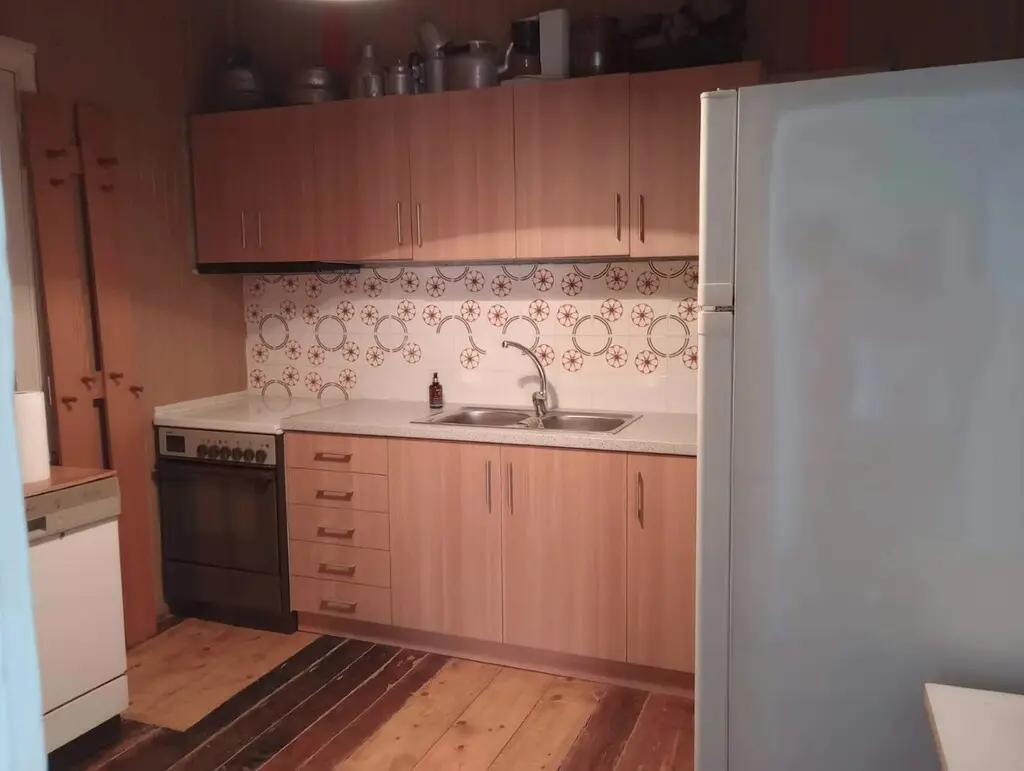 The ground floor features a simple but functional setup. It includes one bedroom that can serve as a personal sleeping space. The living room is combined with the kitchen area, offering a unified space for daily activities. Additionally, there is a shower and WC located on this level, making it convenient for residents and guests. The openness of this area allows for easy movement among the spaces.