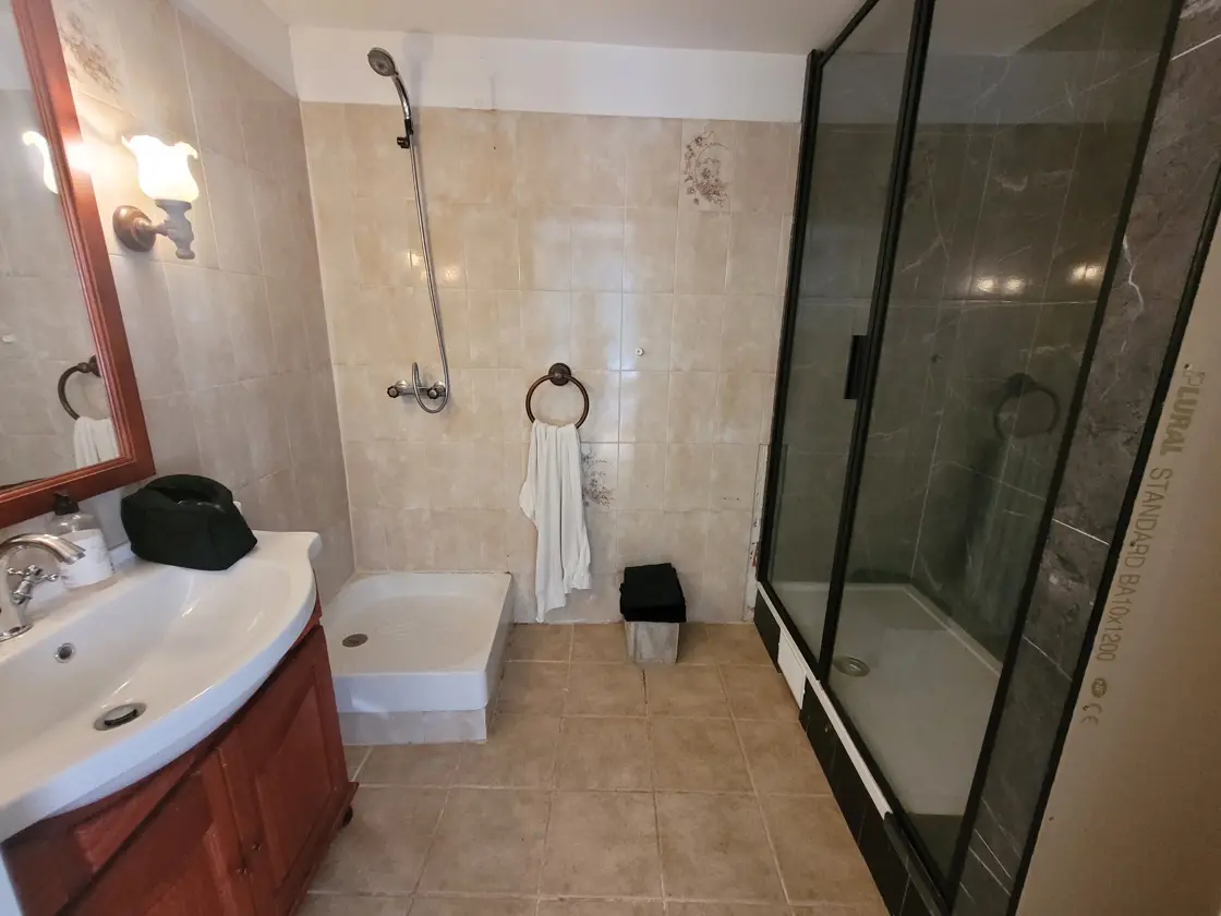 The gite includes a 32 m2 kitchen equipped with necessary appliances, along with a 12.6 m2 bedroom featuring an en-suite shower room. Another bedroom with its own shower room is also part of the gite, enhancing comfort for guests or tenants.