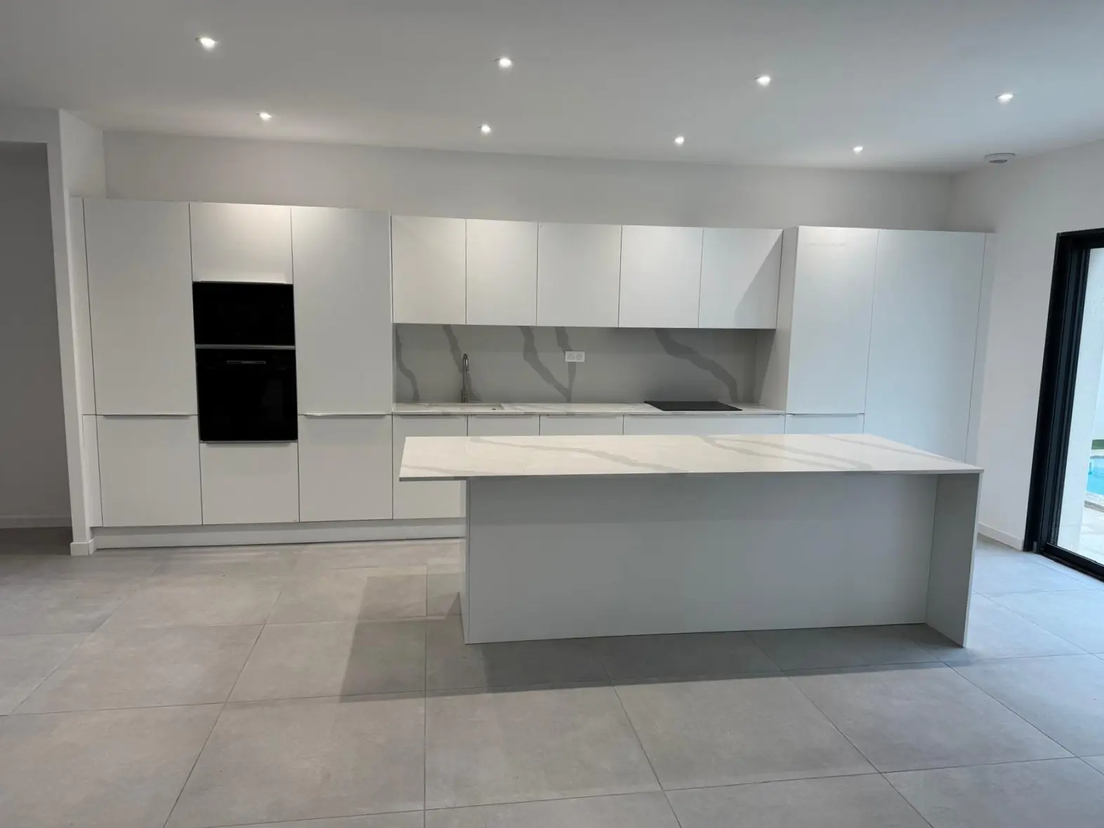 This newly constructed single-storey villa, built in 2025, spans approximately 123 m2. The centerpiece of this home is the expansive 60 m2 living room, which boasts an open-plan kitchen, making it ideal for family gatherings or entertaining guests. The design incorporates large bay windows, ensuring that the space is flooded with natural light. The villa includes a comfortable laundry room and three bedrooms, one of which is a master suite.