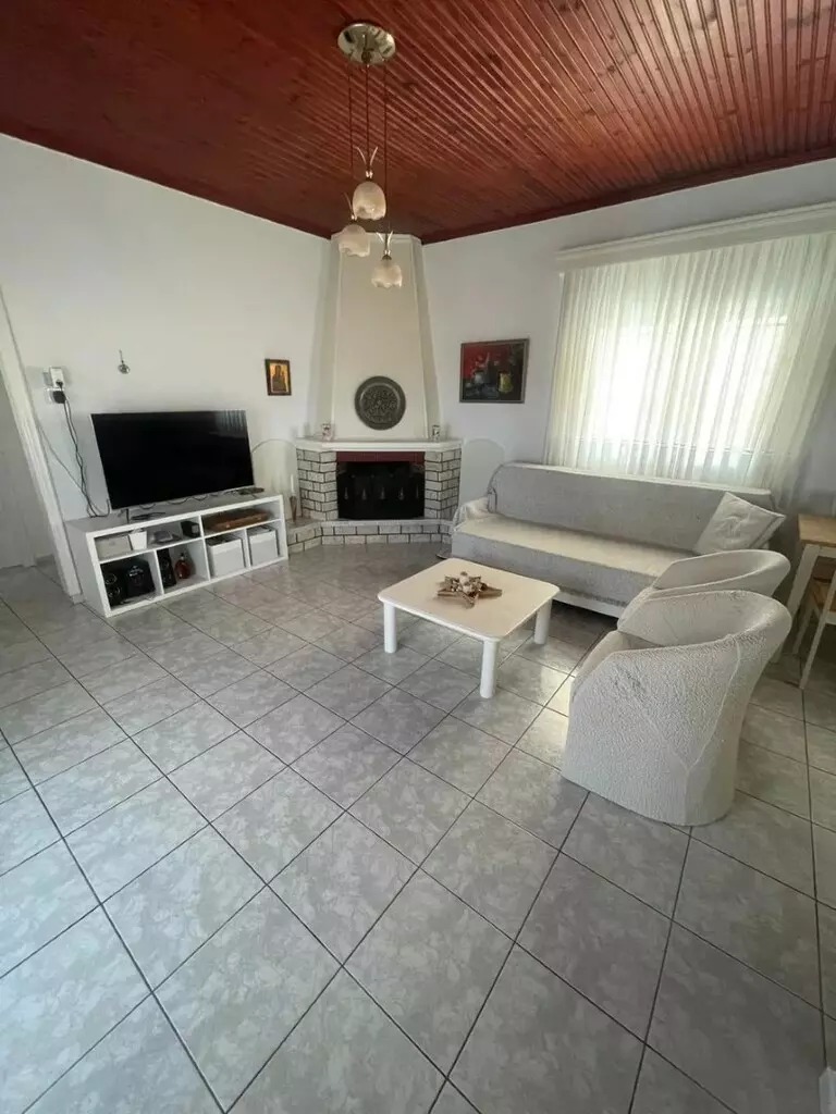 This two-storey house in Kassandra, Chalkidiki, covers an area of 74 square meters. Designed for practicality, the ground floor features a kitchen and a WC, making it functional for daily living. The layout flows efficiently, allowing for easy navigation between the areas.