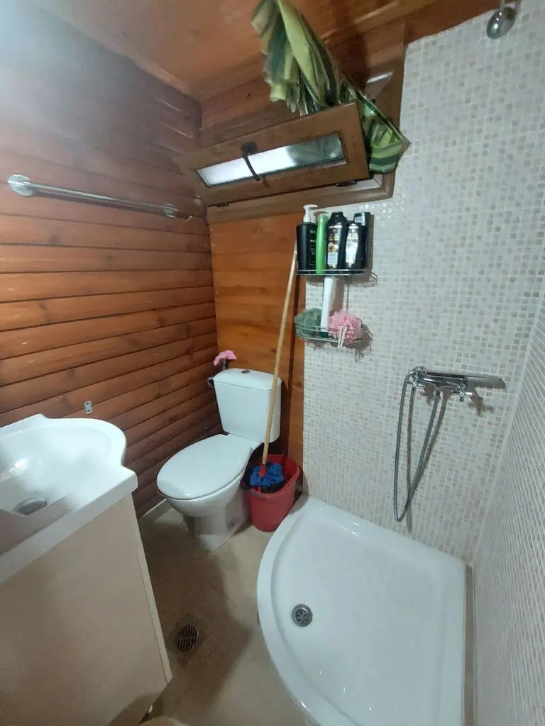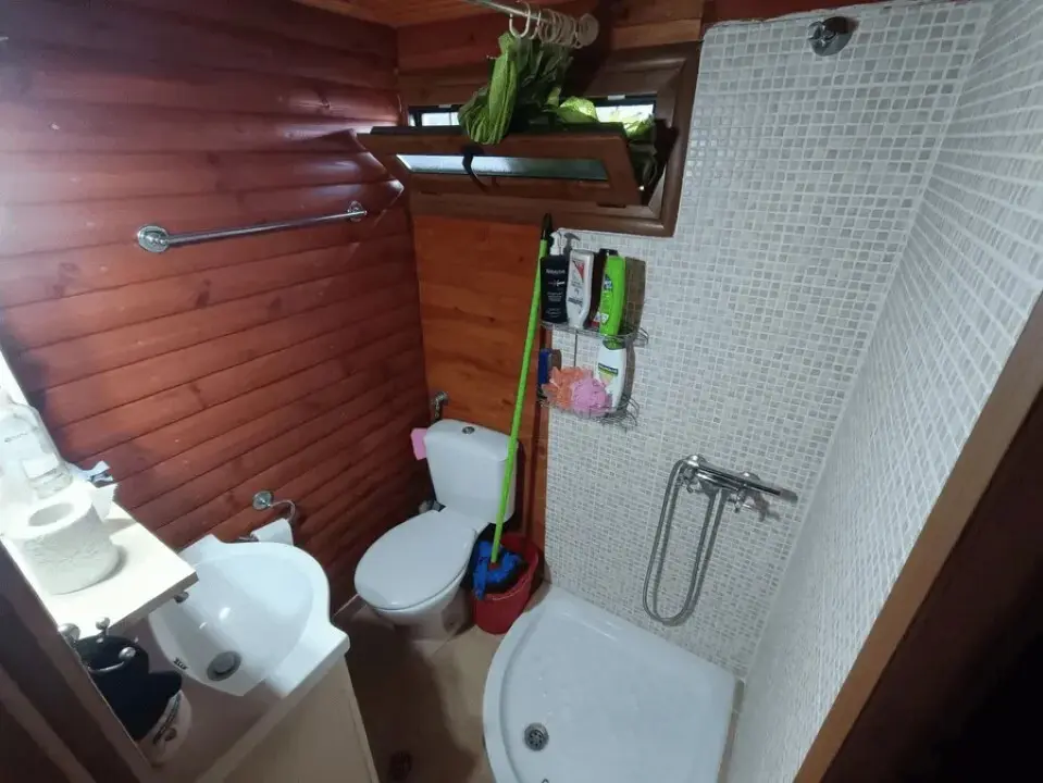 This house includes two bedrooms and a combined living room with kitchen, which allows for an open living concept. The bathroom features a shower and WC, adding to its utility.