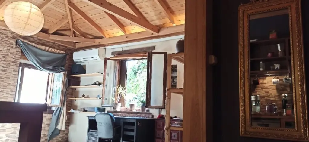 Discover this one-storey house for sale in Thessaloniki, covering an area of 120 square meters. This property provides a view of the city from its windows, offering a glimpse of urban life. The home is equipped with essential features such as air conditioning and heating, catering to various seasonal needs.