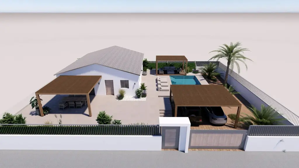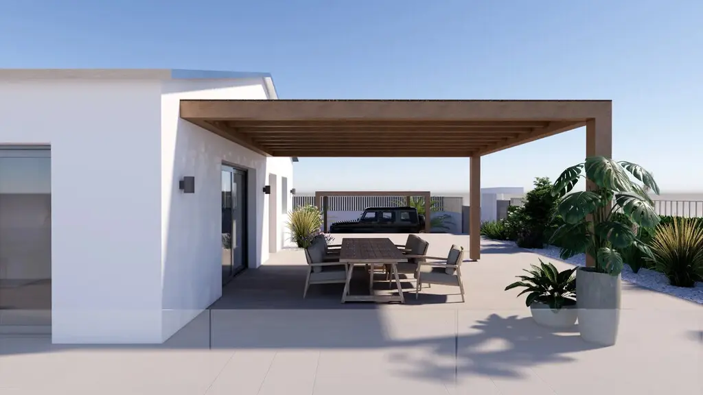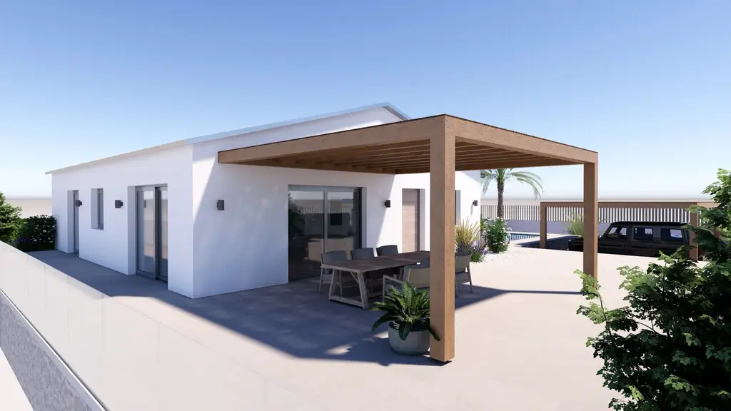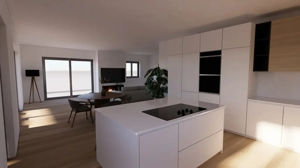 This house features three bedrooms, making it suitable for families or individuals seeking additional space. The layout includes a living room that connects seamlessly to the kitchen, allowing for easy interaction while preparing meals or entertaining guests. Additionally, there are two shower WCs, which enhances convenience for residents and visitors alike.