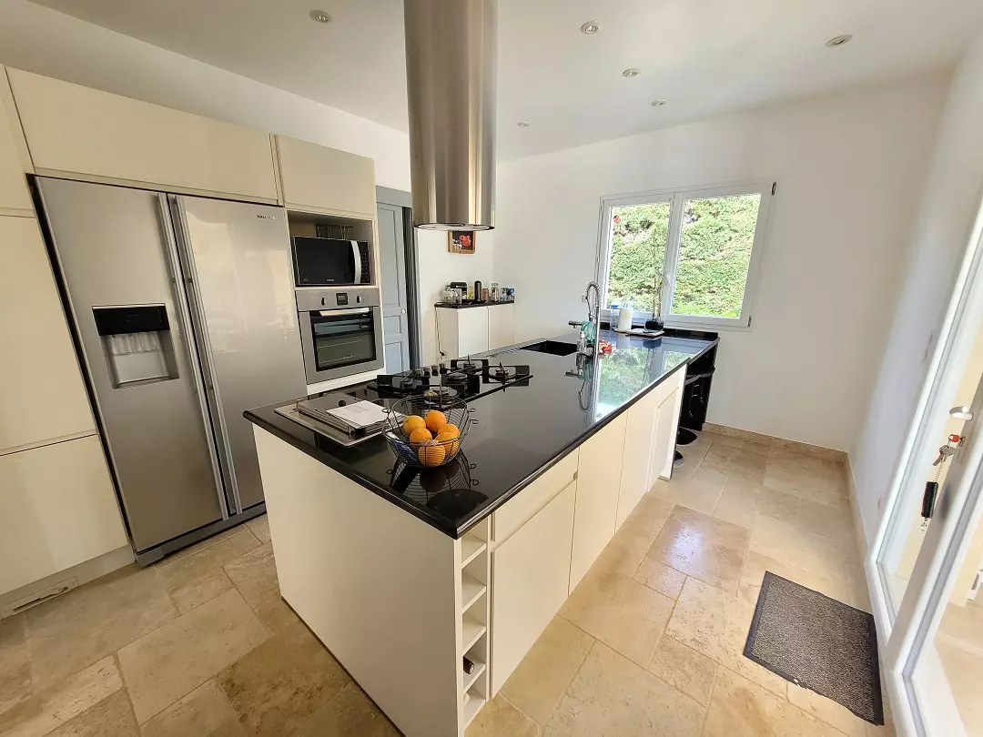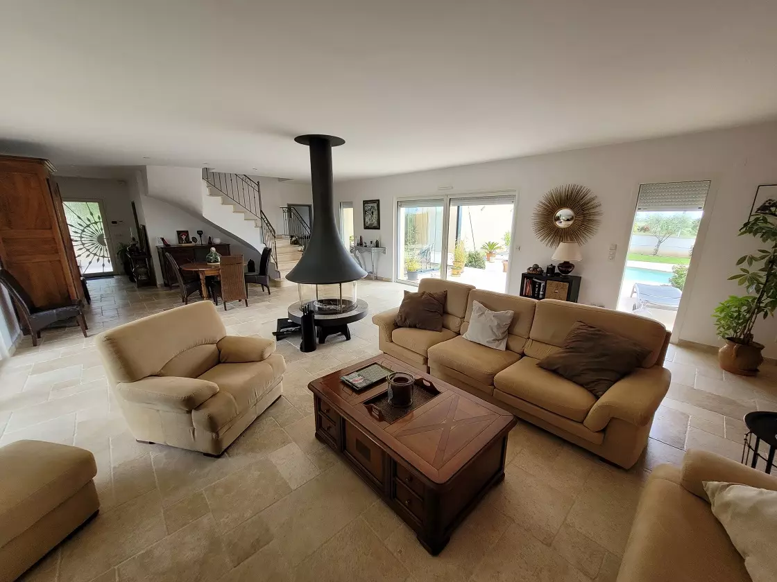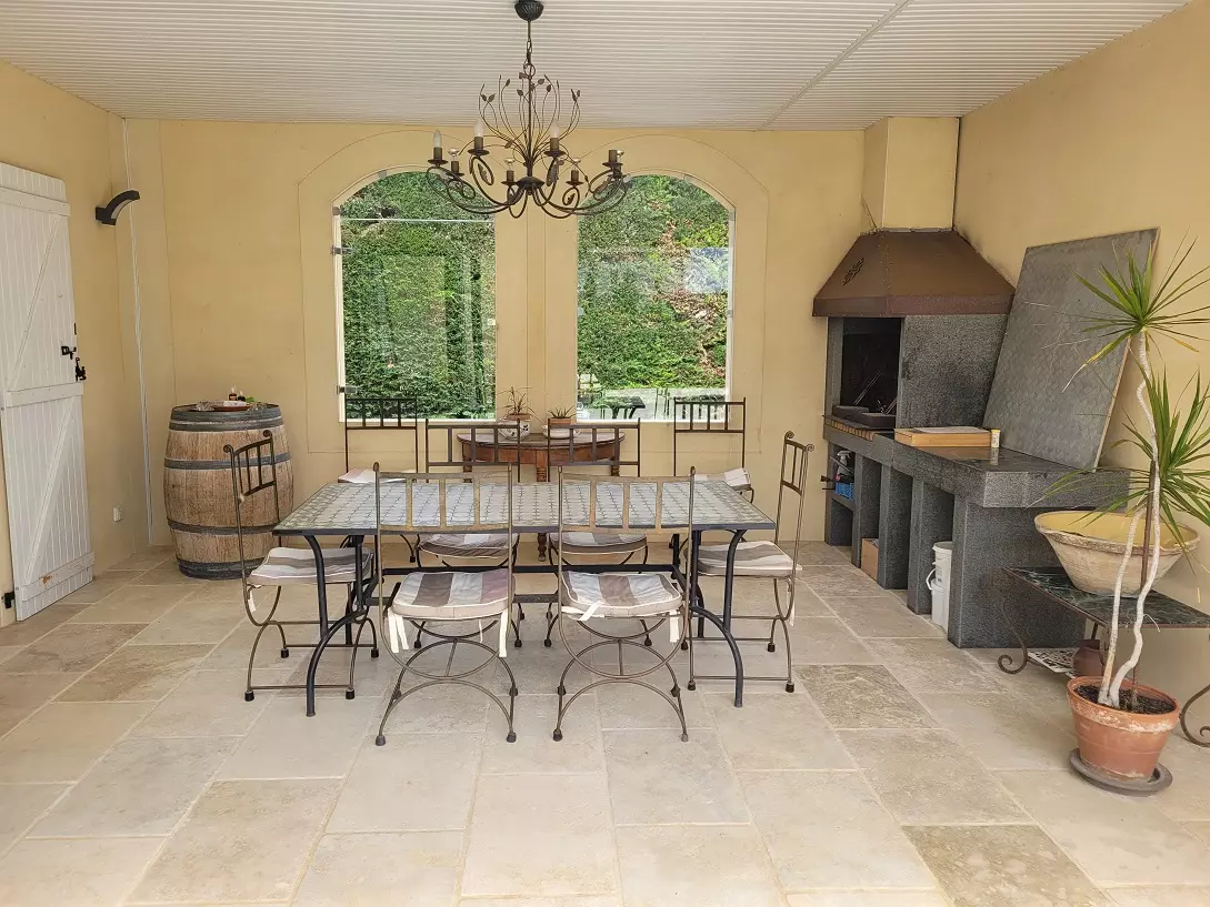 This contemporary bastide-style villa, built in 2010, presents a generous living space of 195 m². It includes four bedrooms and two bathrooms. Natural light floods the home through large windows, creating a vibrant atmosphere and allowing for picturesque views of the surrounding countryside. The villa showcases a modern design coupled with high-quality materials throughout.