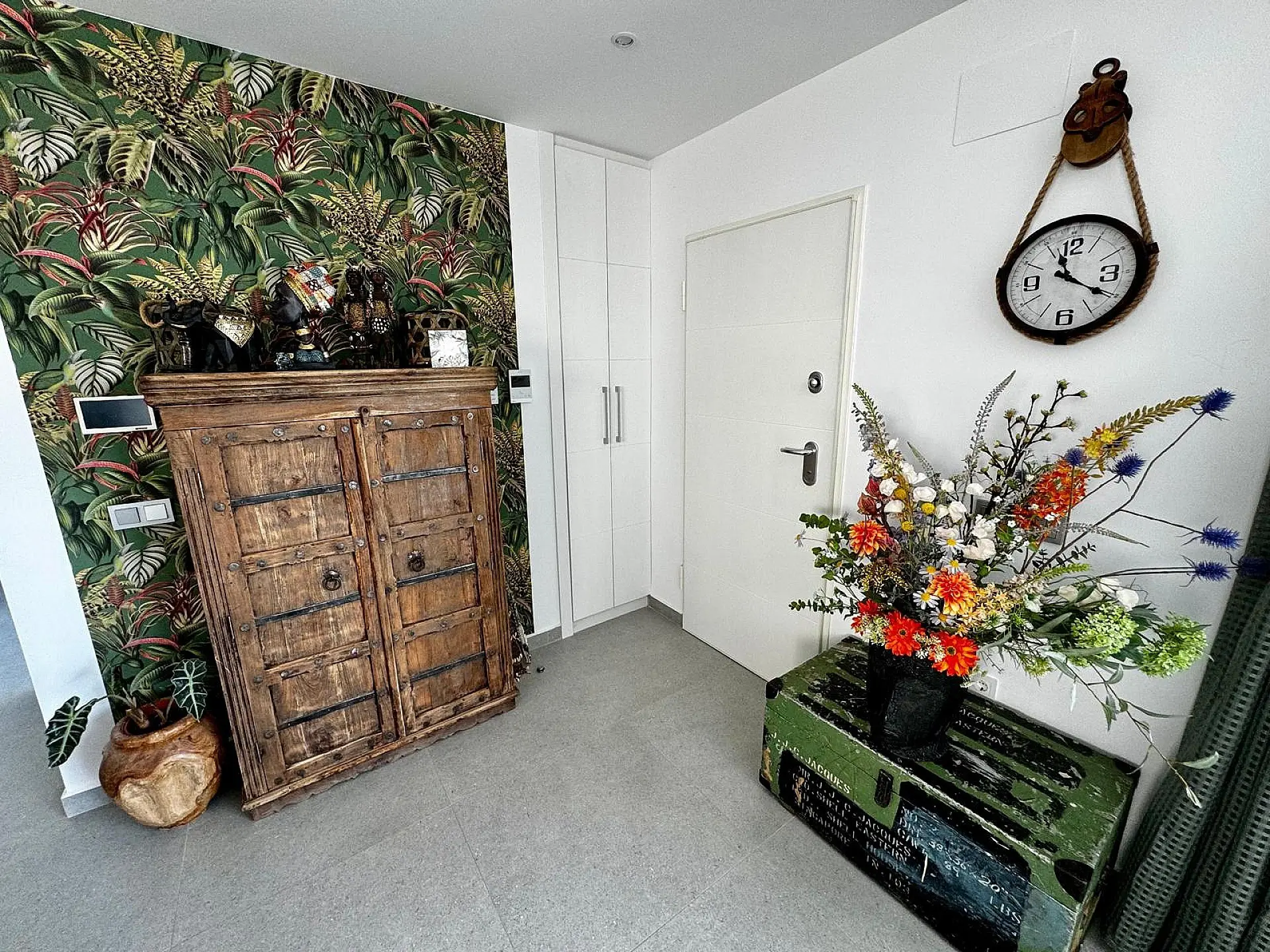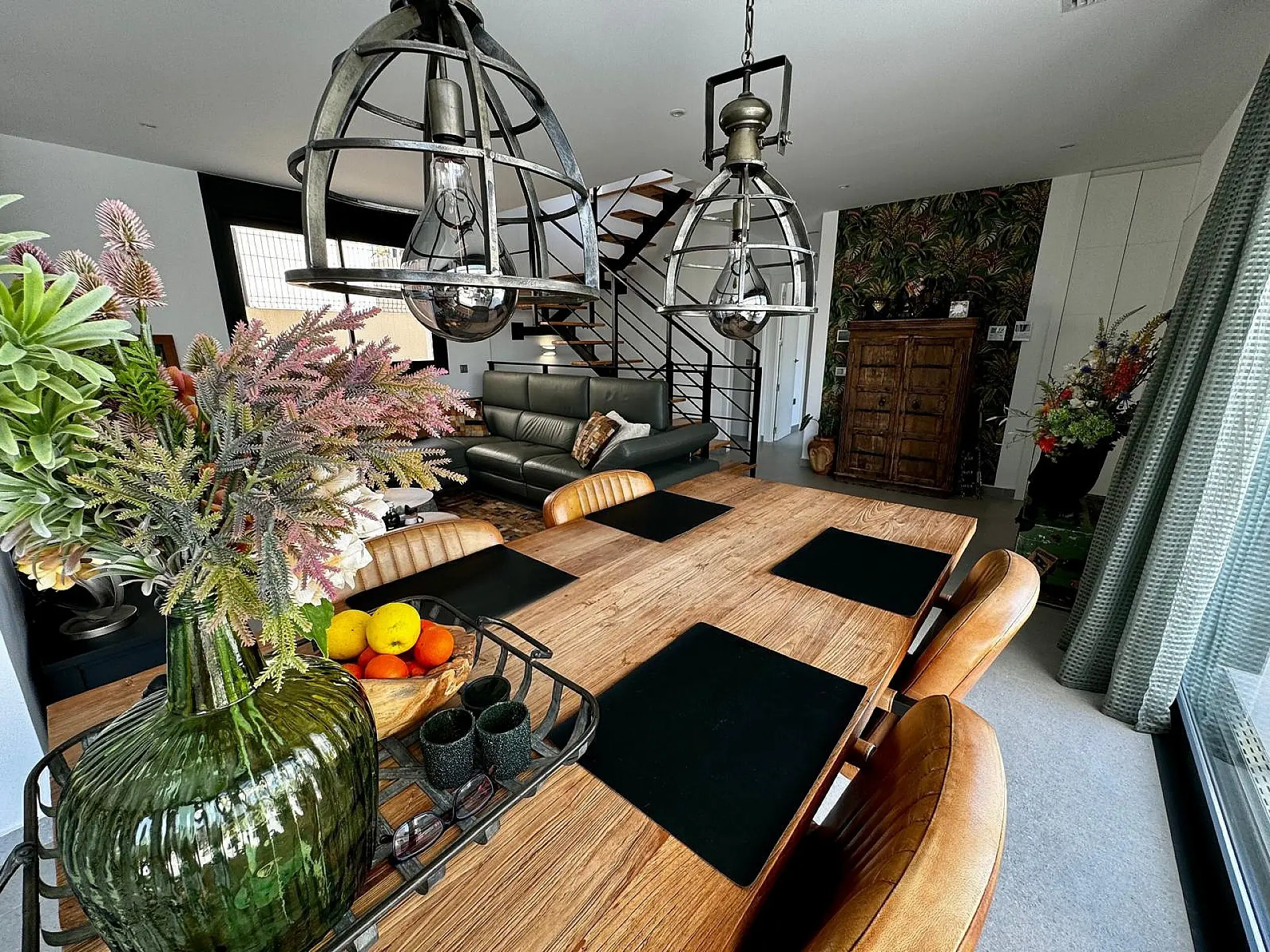 When you exit the bedroom and go downstairs, there’s a room to your left with cupboards that could serve as another bedroom or games room, depending on your needs. Further around, you will find the entrance to a double garage. The lower level offers a versatile area that can be set up to your liking. Going back to the staircase and moving up to the first floor, you will find two additional bedrooms of decent size. Each has fitted wardrobes, private en-suite shower rooms, and access to the upper terrace. Once outside on the terrace, there’s a seating area to your left that has enough space for sunbeds. Moving to the other side of the terrace, there is a larger area with outdoor cooking facilities for when you have friends over for a barbecue. The owners have added a toldo for shade, along with solar panels that help reduce the electric bill while benefiting the environment. The villa is less than a 3-minute walk to local amenities, including restaurants, shops, and bars.