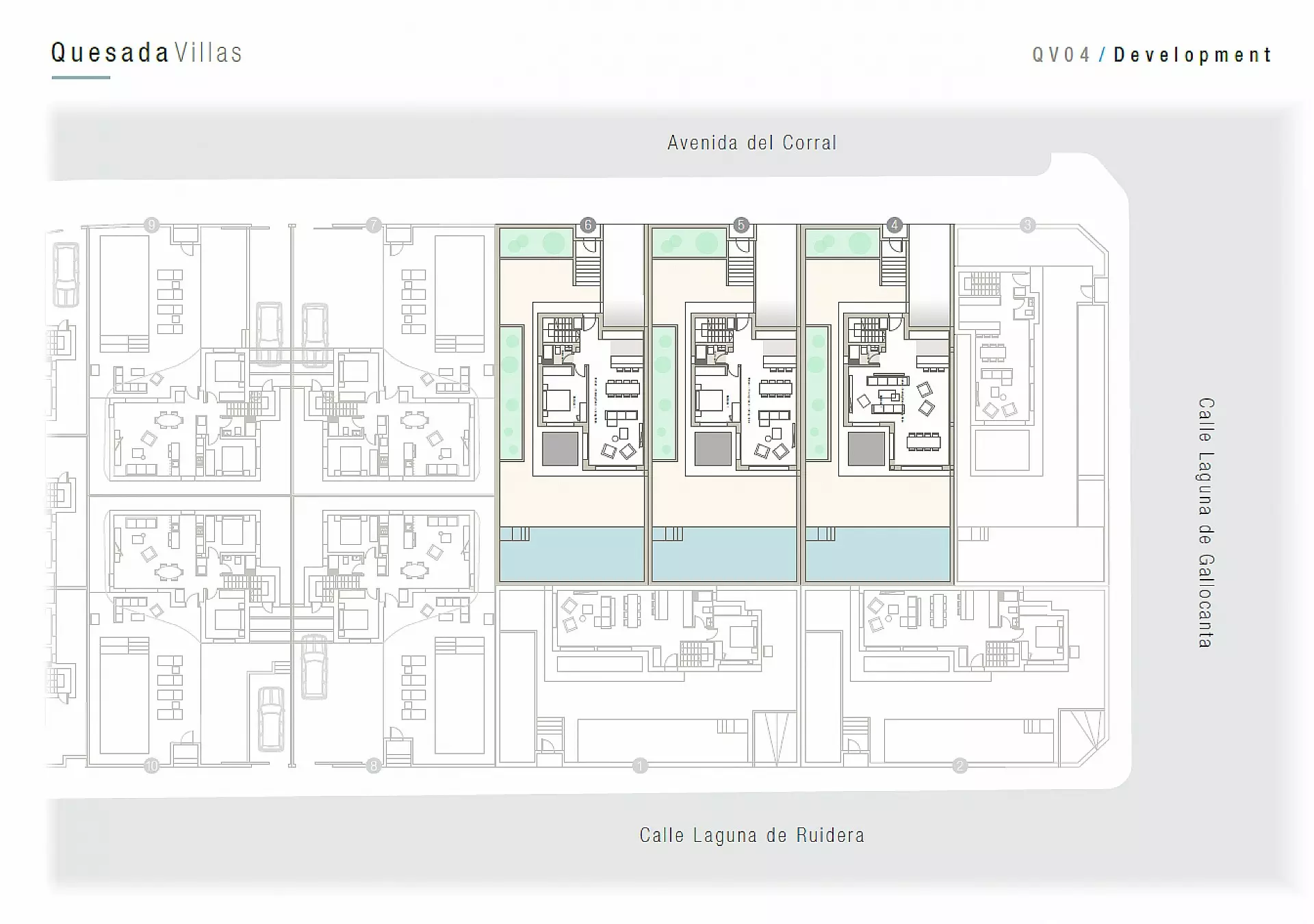 This selection of 6 exclusive homes showcases functional designs in a tranquil area of Quesada. Villas incorporate minimalist elements combined with quality appliances, ensuring optimal distribution of space and abundant natural light. The high-quality finishes and materials accentuate the contemporary style.