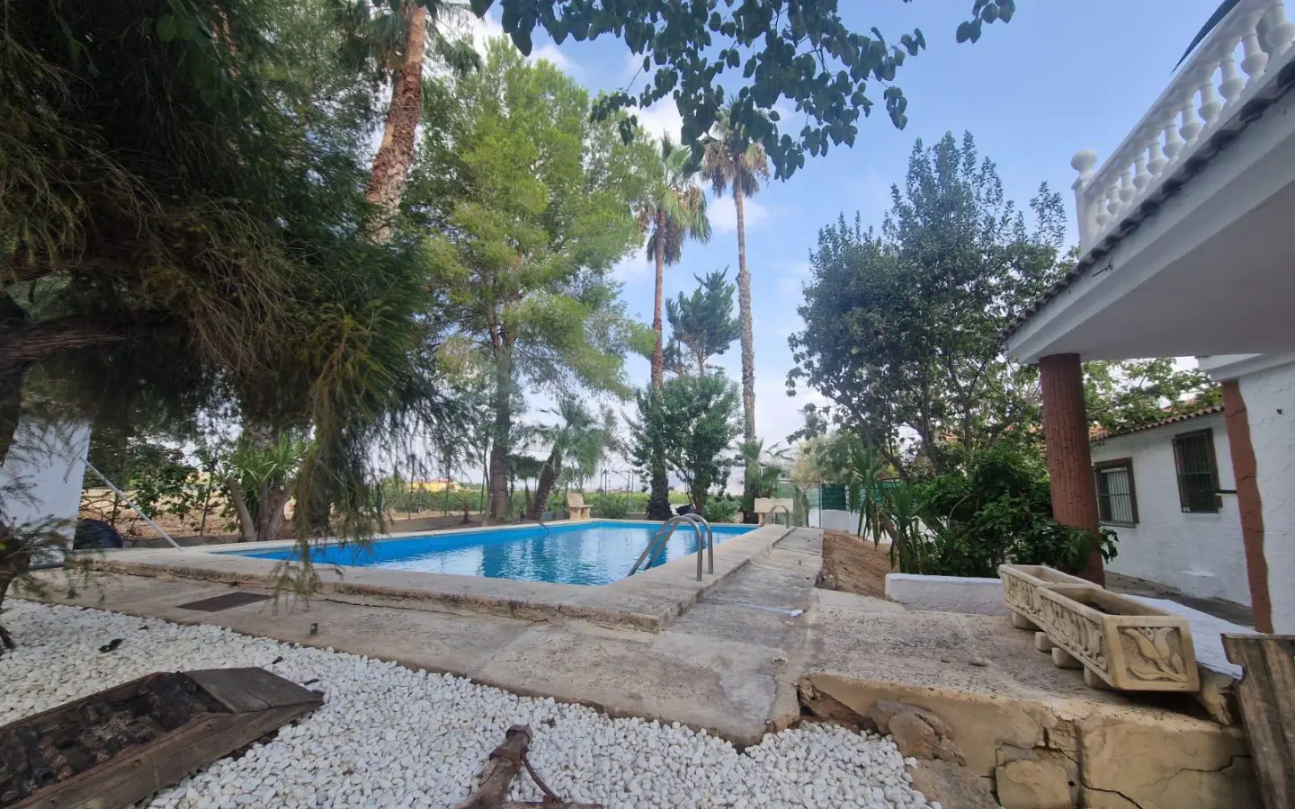 A swimming pool can be found on the property, along with a large terrace that receives plenty of sunlight. The climate in the Vega Baja del Segura region is generally mild, allowing for outdoor enjoyment throughout the year. This setup makes it suitable for gatherings or simple relaxation.