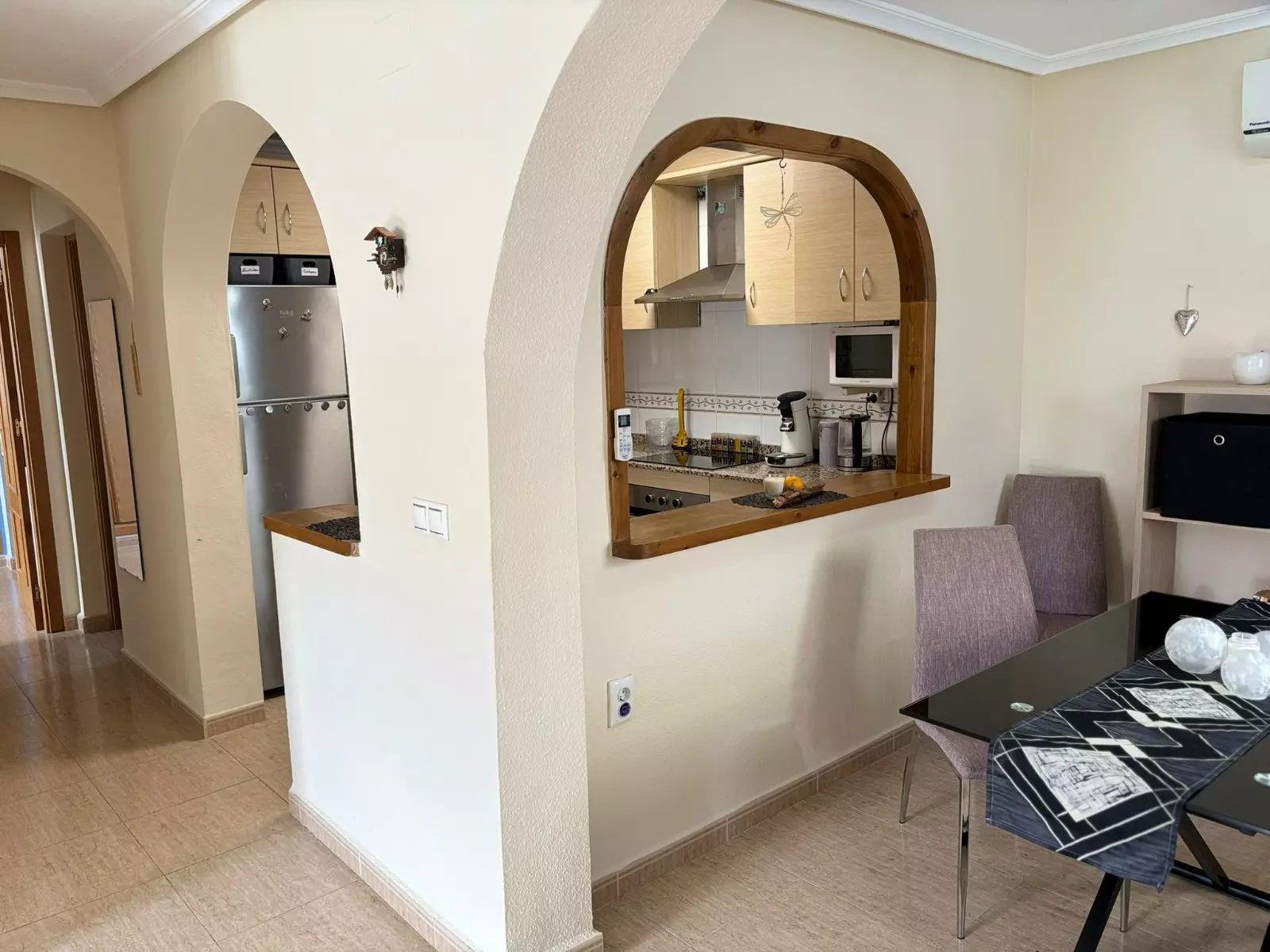 This villa spans a built area of 152 m², offering practical living spaces. It features three double bedrooms, each equipped with fitted wardrobes, ensuring an organized environment. The master bedroom includes an en-suite bathroom and direct access to the terrace.