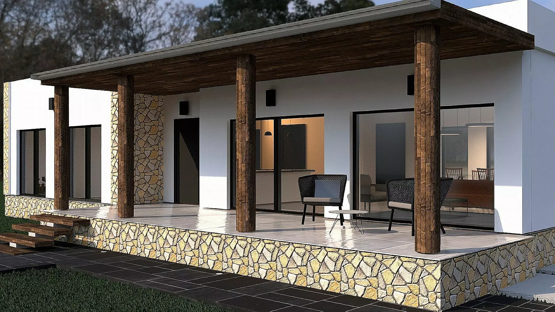 Set on a 4000m² fenced plot, this villa includes 3 bedrooms and 2 bathrooms (one is an ensuite attached to the master). The large living room features an open-plan kitchen complete with an island, ideal for entertaining. Big windows lead out to a full-length terrace where you can enjoy the views all around.