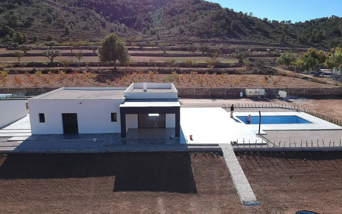 This modern villa is designed with several finishes inside and out, making it adaptable to a variety of preferences. It is just 10 minutes away from Pinoso and 5 minutes from Alguena. The property includes a double garage and a pool, with all necessary legalities handled. You can customize the internal features, and if more space is desired, the design can be expanded (note that the kitchen is not included).