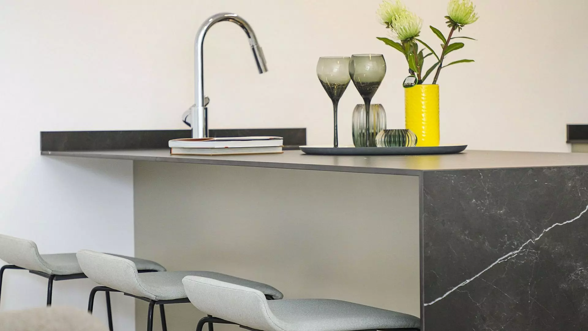 The kitchen comes equipped with designer furnishings and high-end appliances, catering to those who appreciate functionality.