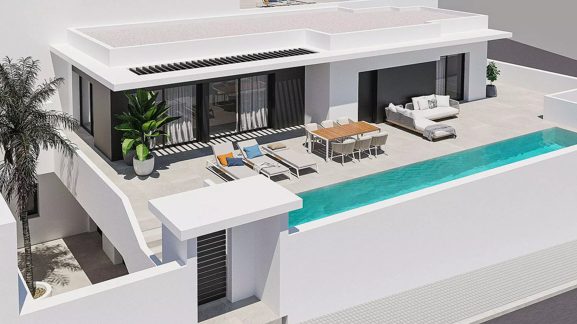 Villa Atenea is a modern 265m² property featuring 4-5 bedrooms, located on a 300m² plot. It includes a private pool and boasts an ideal sun orientation with open views of the mountains. This villa is conveniently situated near a golf course and the local town.
