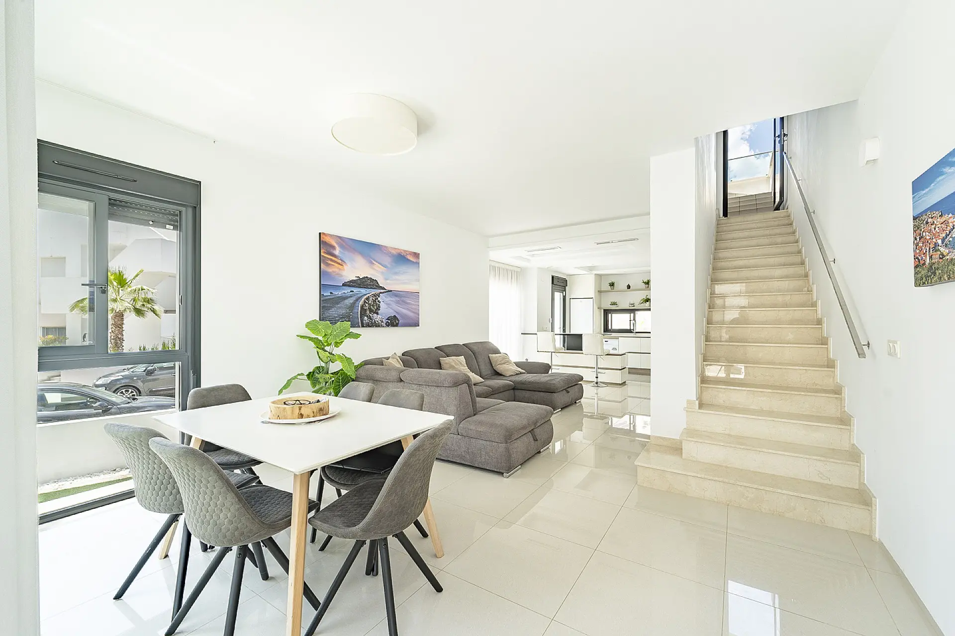 This large villa in Ciudad Quesada features 4 bedrooms and 4 bathrooms, along with a sizeable lounge, kitchen, roof terrace, and access to a communal pool. If you are looking for space and functionality, this property provides that in abundance.