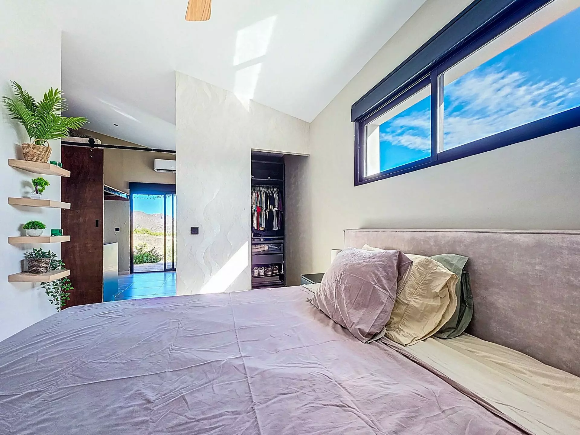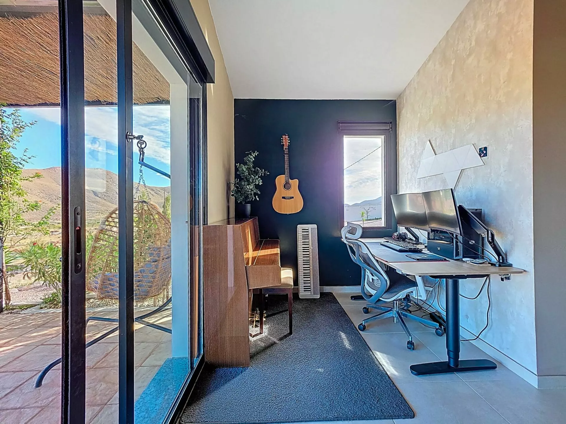 Completed just two years ago, the villa utilizes modern, high-quality materials while reflecting an authentic style that aligns with the Spanish landscape. The surrounding mountain ranges contribute to a panoramic backdrop that can be fully enjoyed from the terrace. Two large covered terraces provide the option to enjoy both sun and shade. One terrace is suitable for breakfast with the sunrise, while the other is ideal for relaxation with a glass of local wine during sunset.