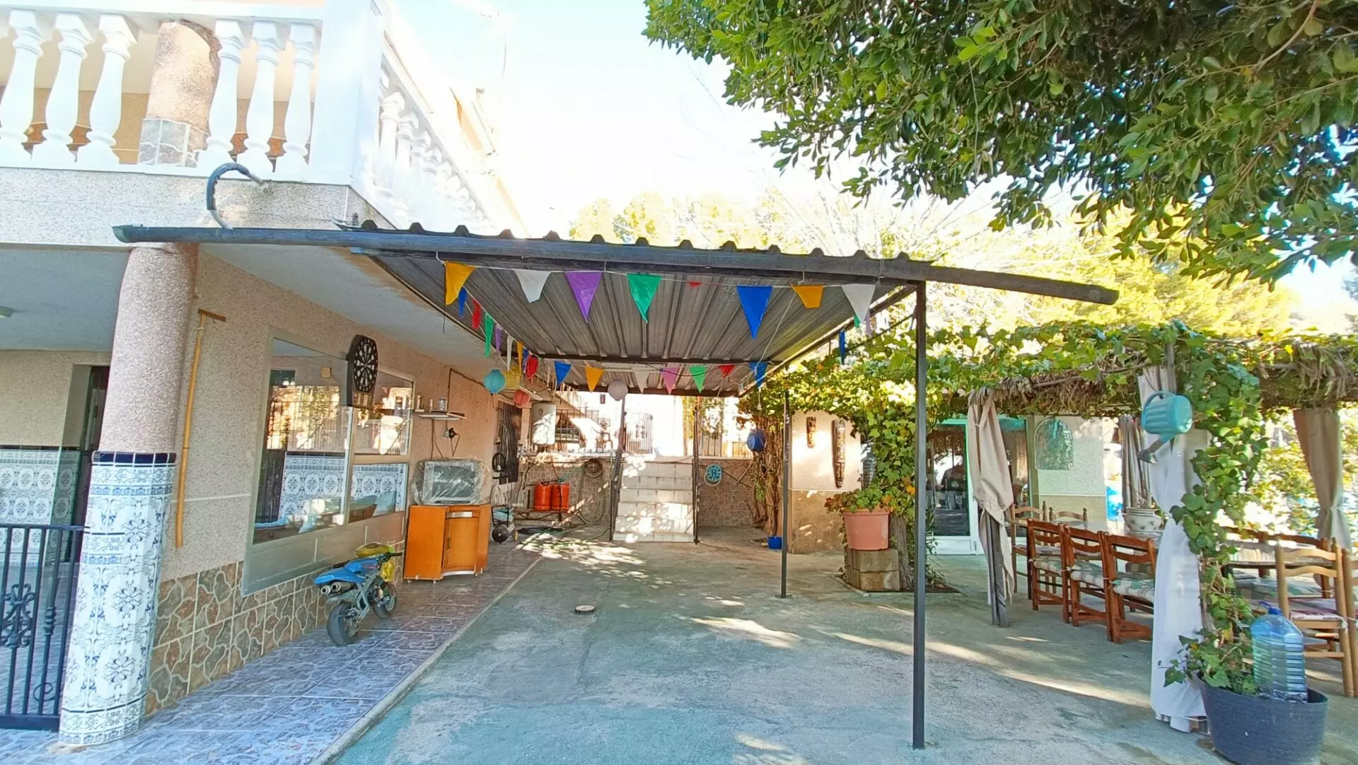 Located in a natural setting, this villa in La Romana offers a unique opportunity for individuals and families seeking a quiet atmosphere surrounded by mountains, vineyards, olive groves, and almond trees. The property features an automatic sliding gate at the entrance, leading to a spacious garden with areas designed for relaxation, pergolas for enjoying the sun, and a carport for vehicle protection.