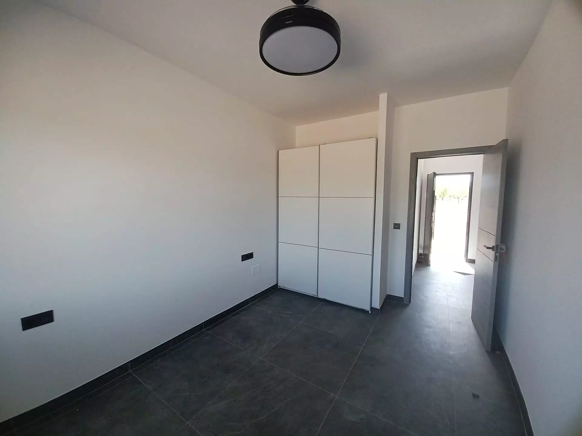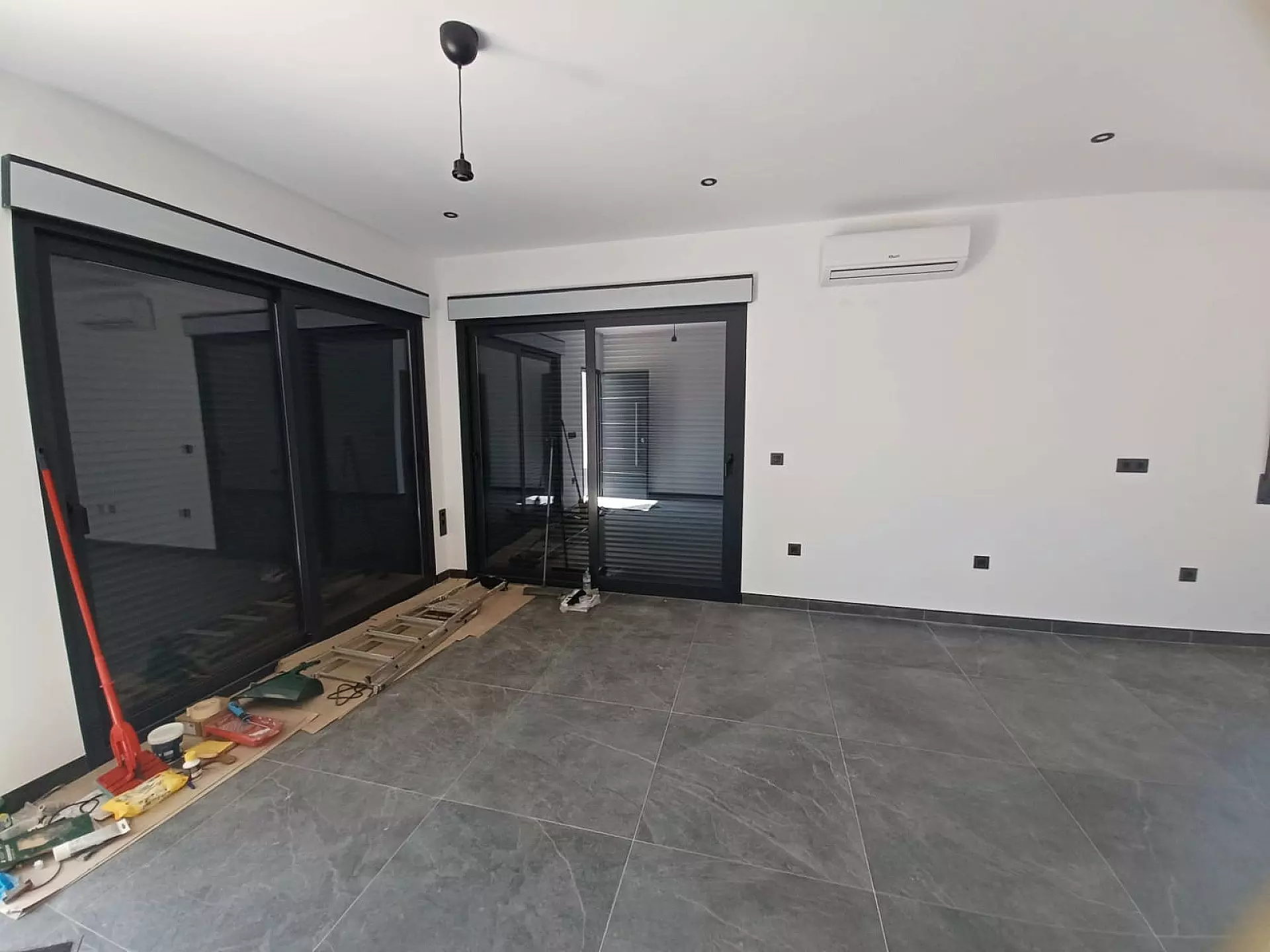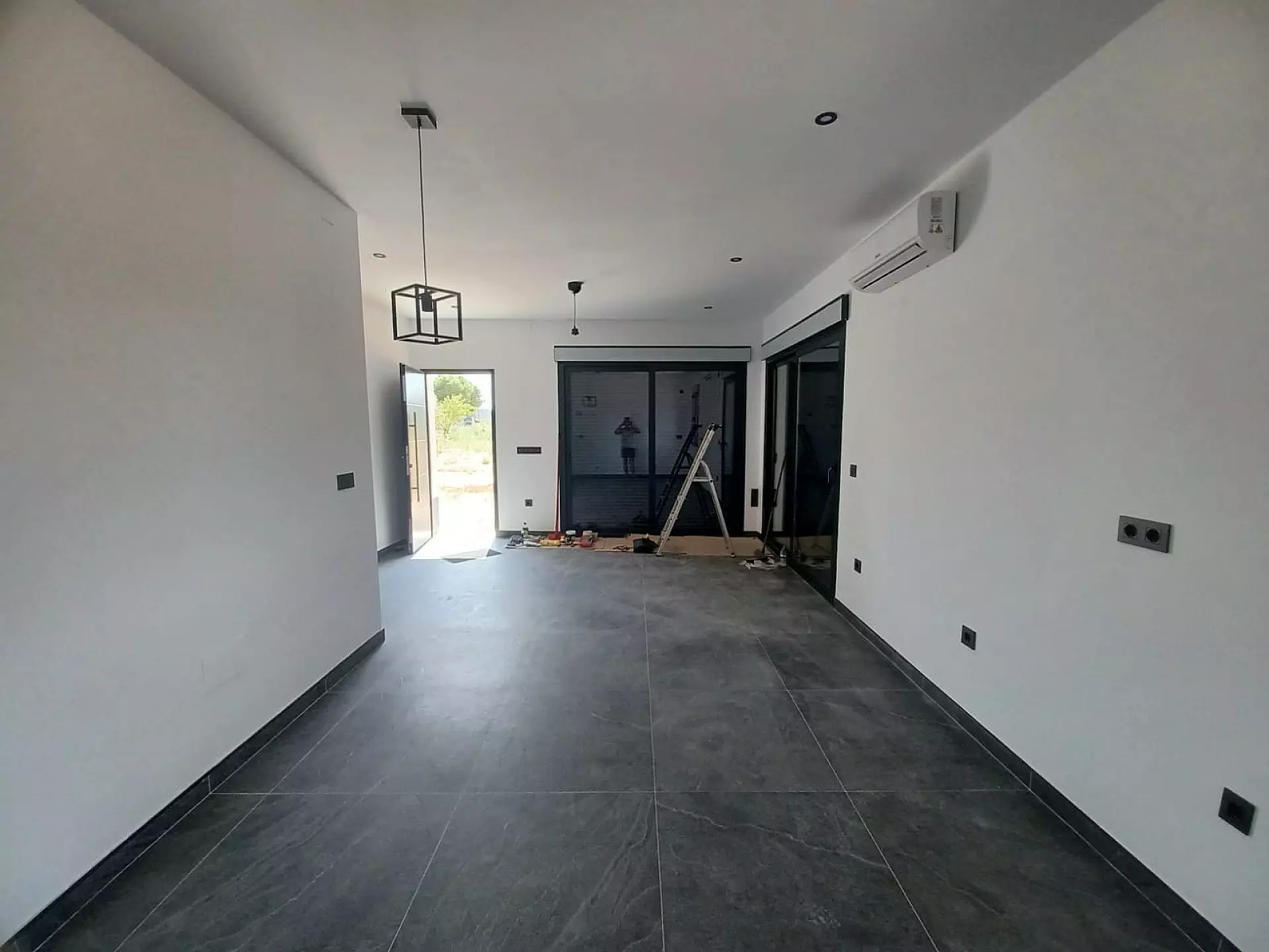 The development plan includes a house of 160 square meters in a modern style, designed to be on one level. The project also features a pool, a garage measuring 50 square meters, and a guest house of the same size, both of which are already built.
