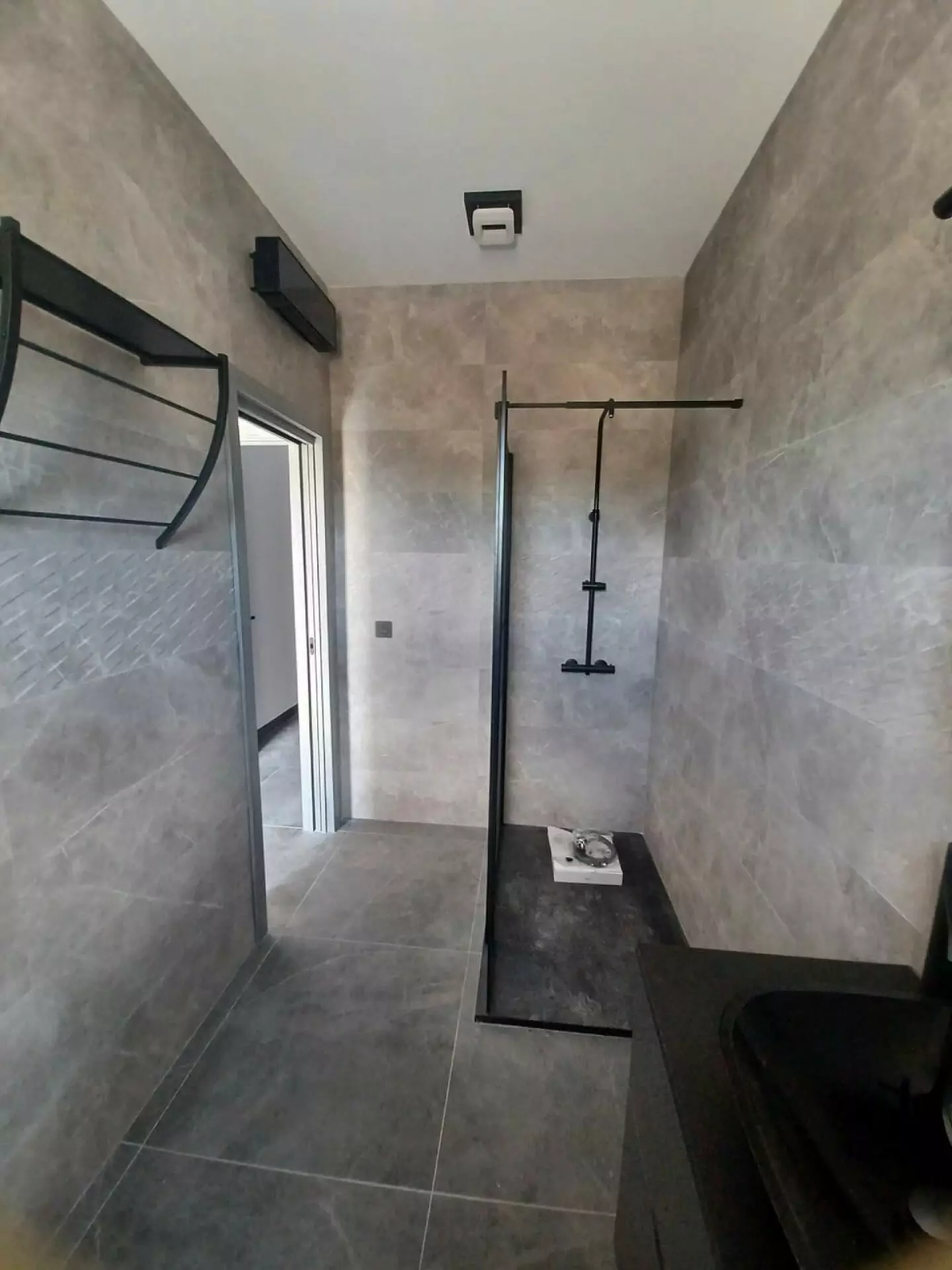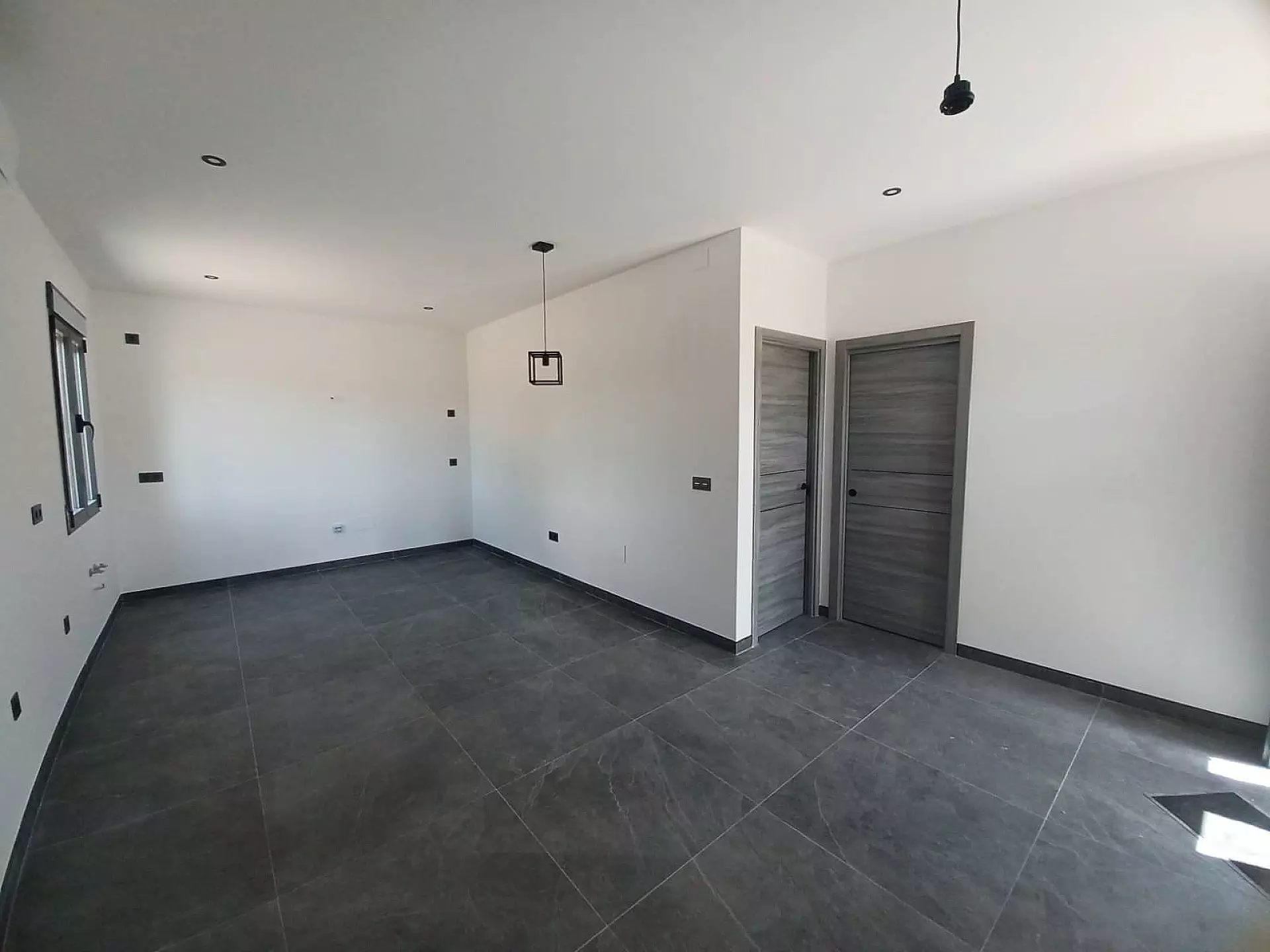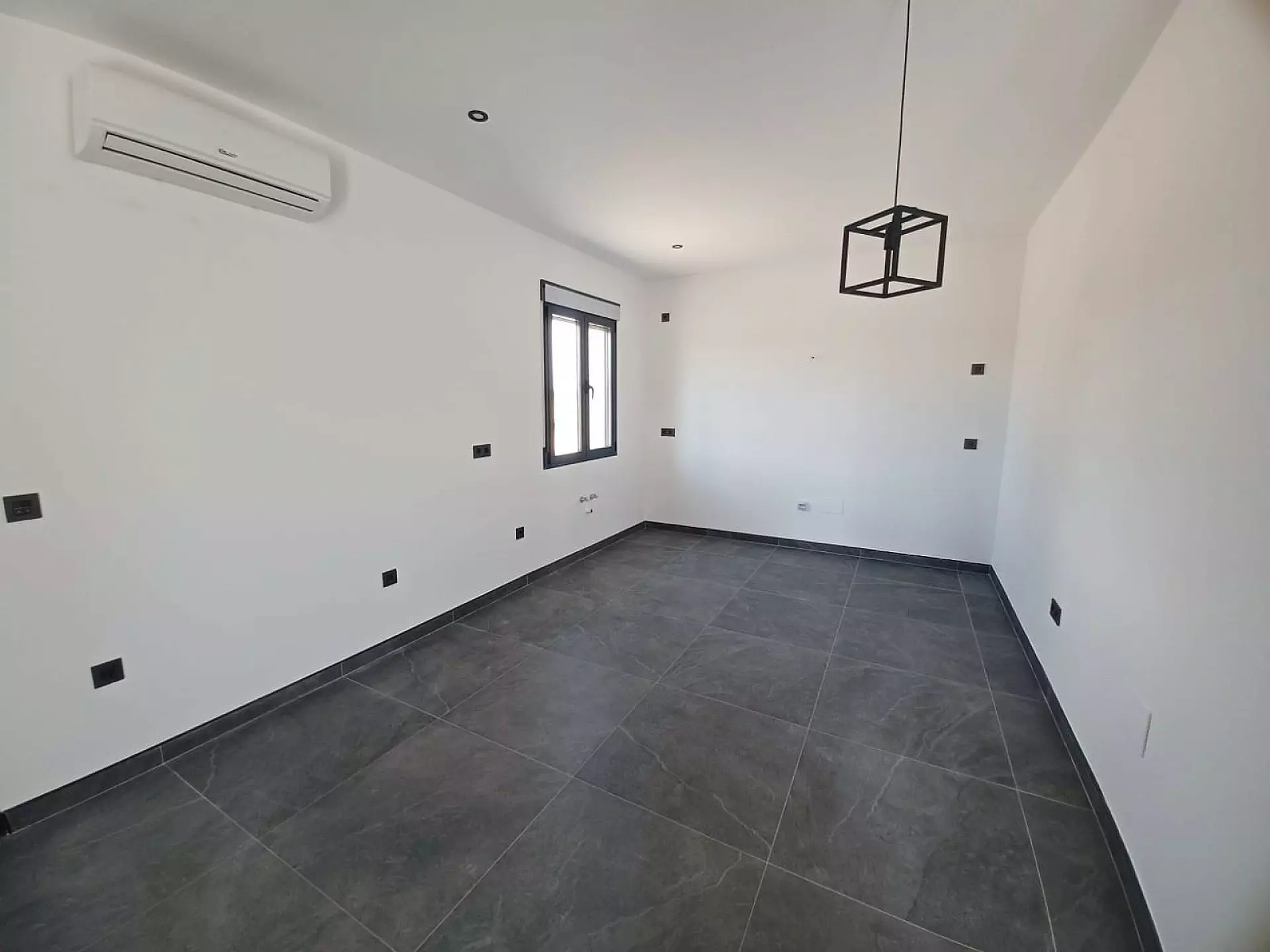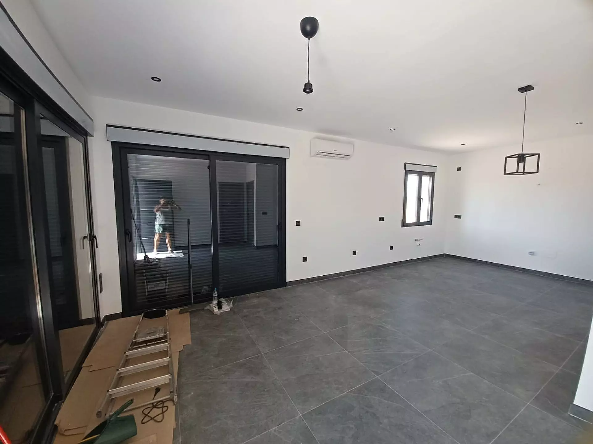 The development plan includes a house of 160 square meters in a modern style, designed to be on one level. The project also features a pool, a garage measuring 50 square meters, and a guest house of the same size, both of which are already built.
