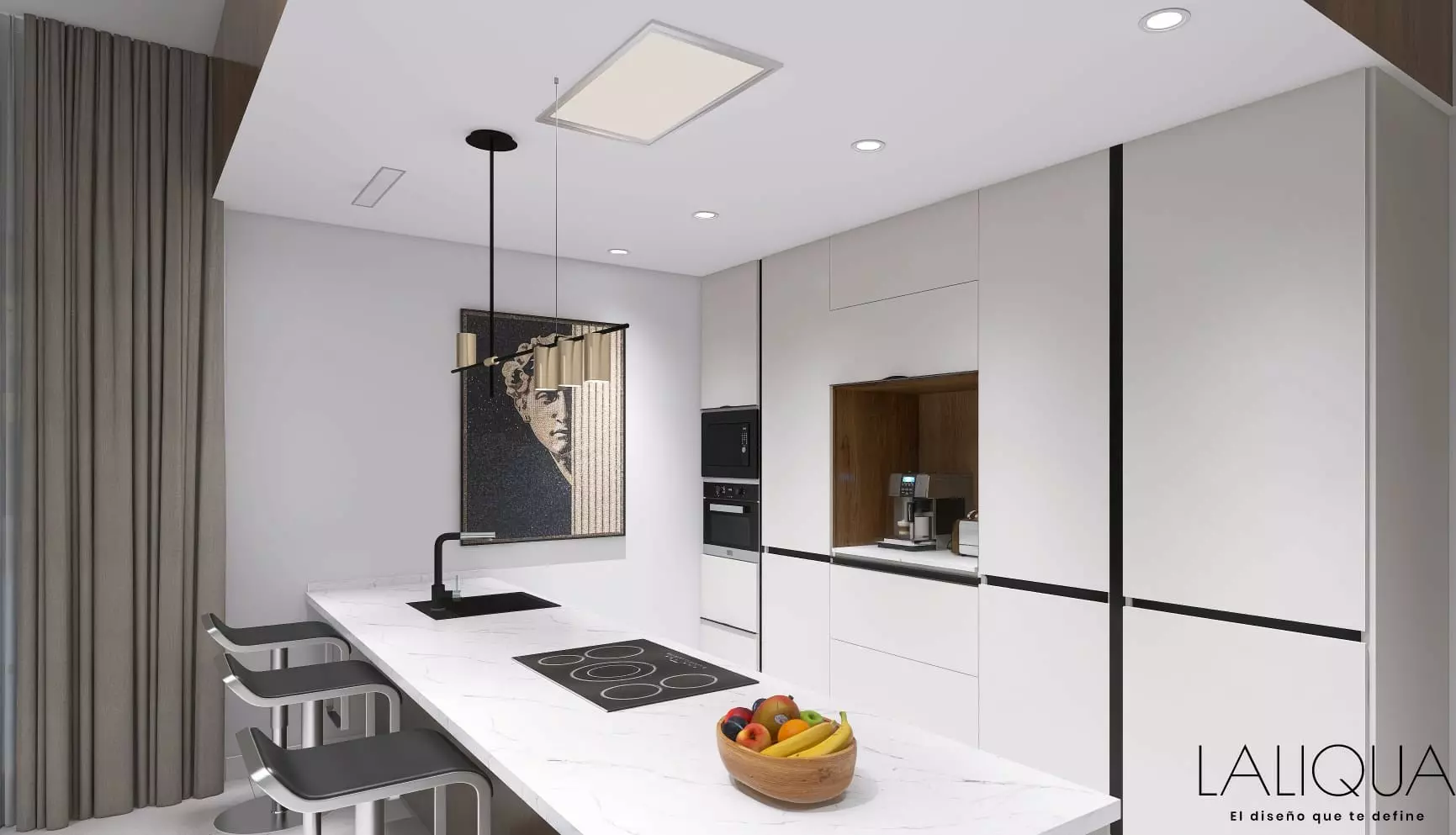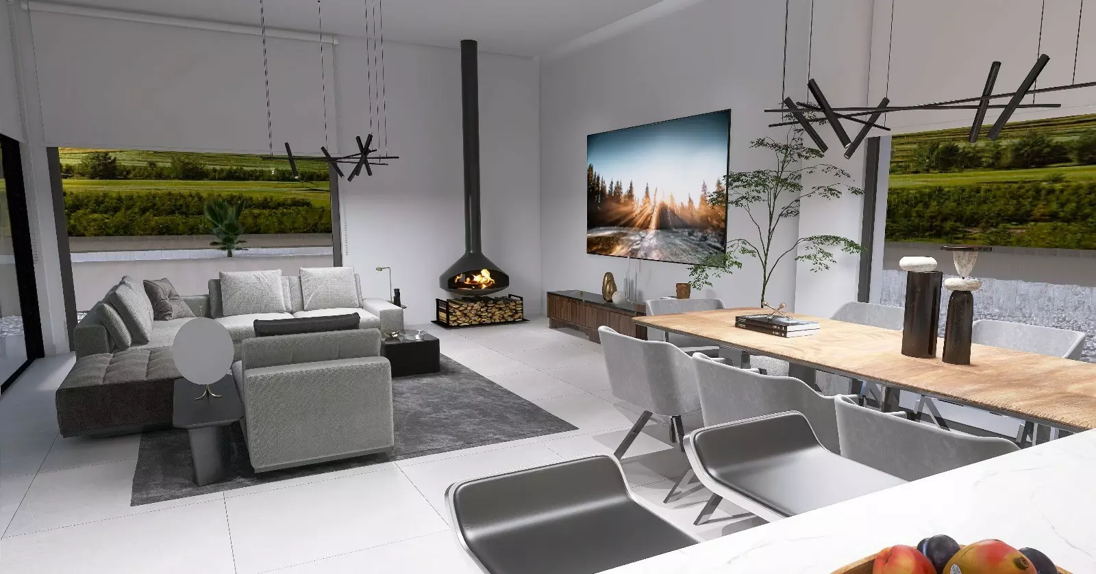 The villa features aluminum carpentry, complete with thermal break and motorized blinds in most rooms, providing a functional yet modern touch. The living-dining area and gallery have their own unique finishes.