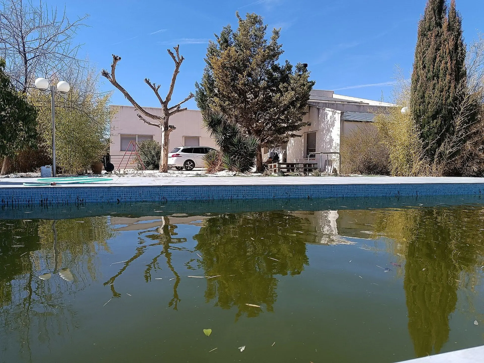 This villa, constructed in 2008, sits on a substantial plot of 12,900 square meters, with 4,000 square meters securely fenced. The total built area exceeds 350 square meters, offering a residential space of 210 square meters. The layout includes four bedrooms, two bathrooms, and two living rooms, making it suitable for varying needs.