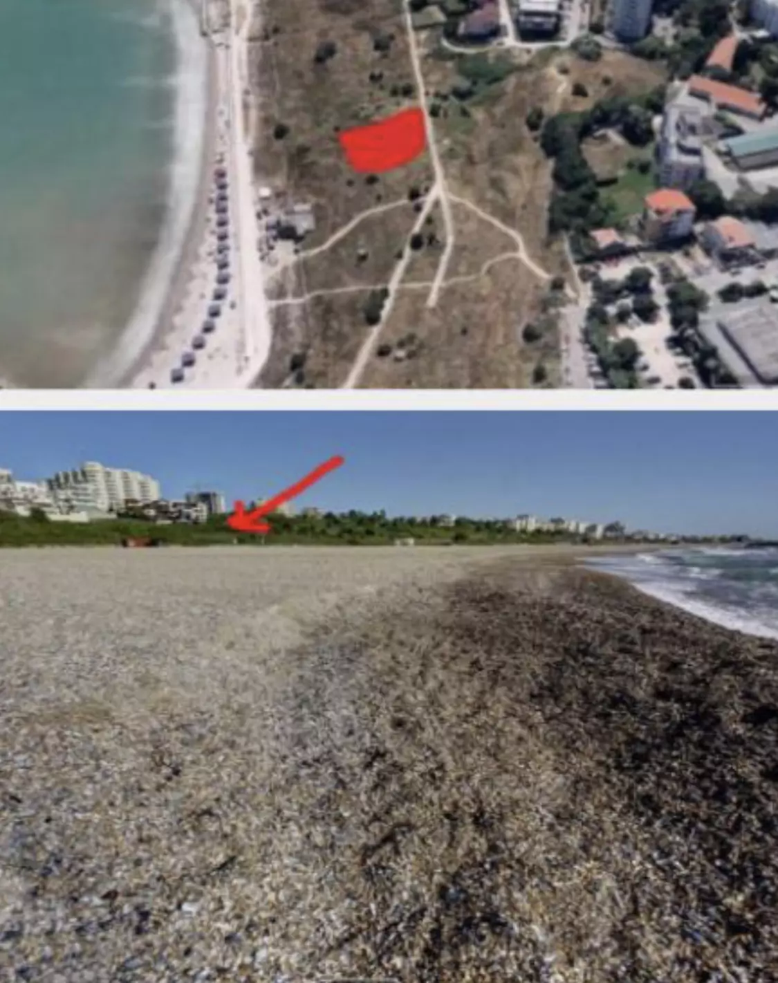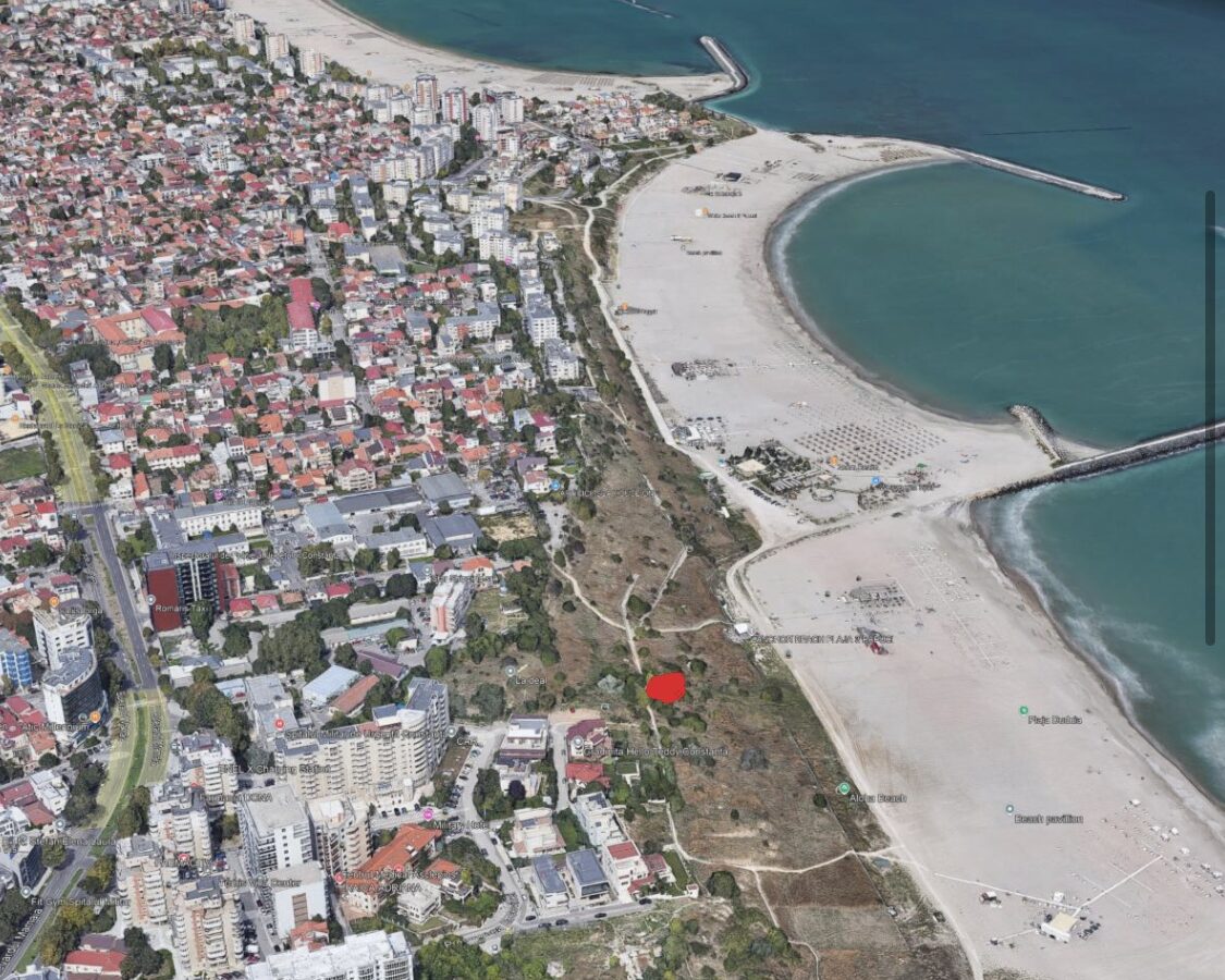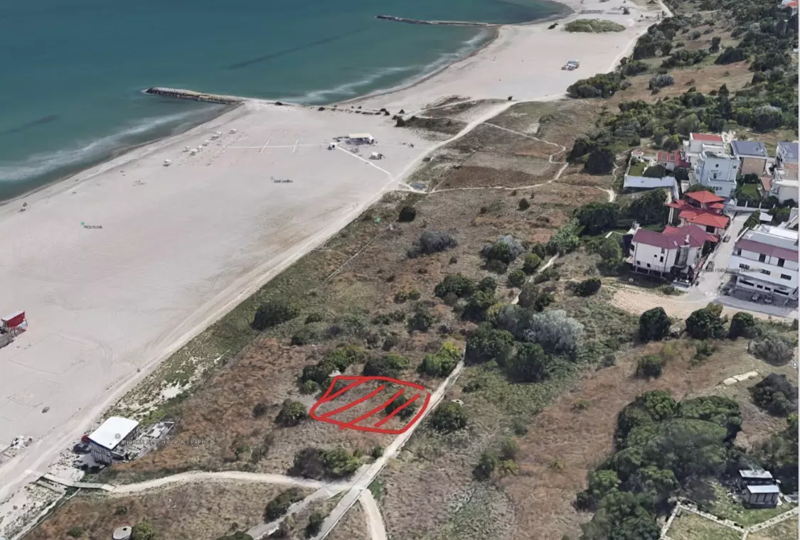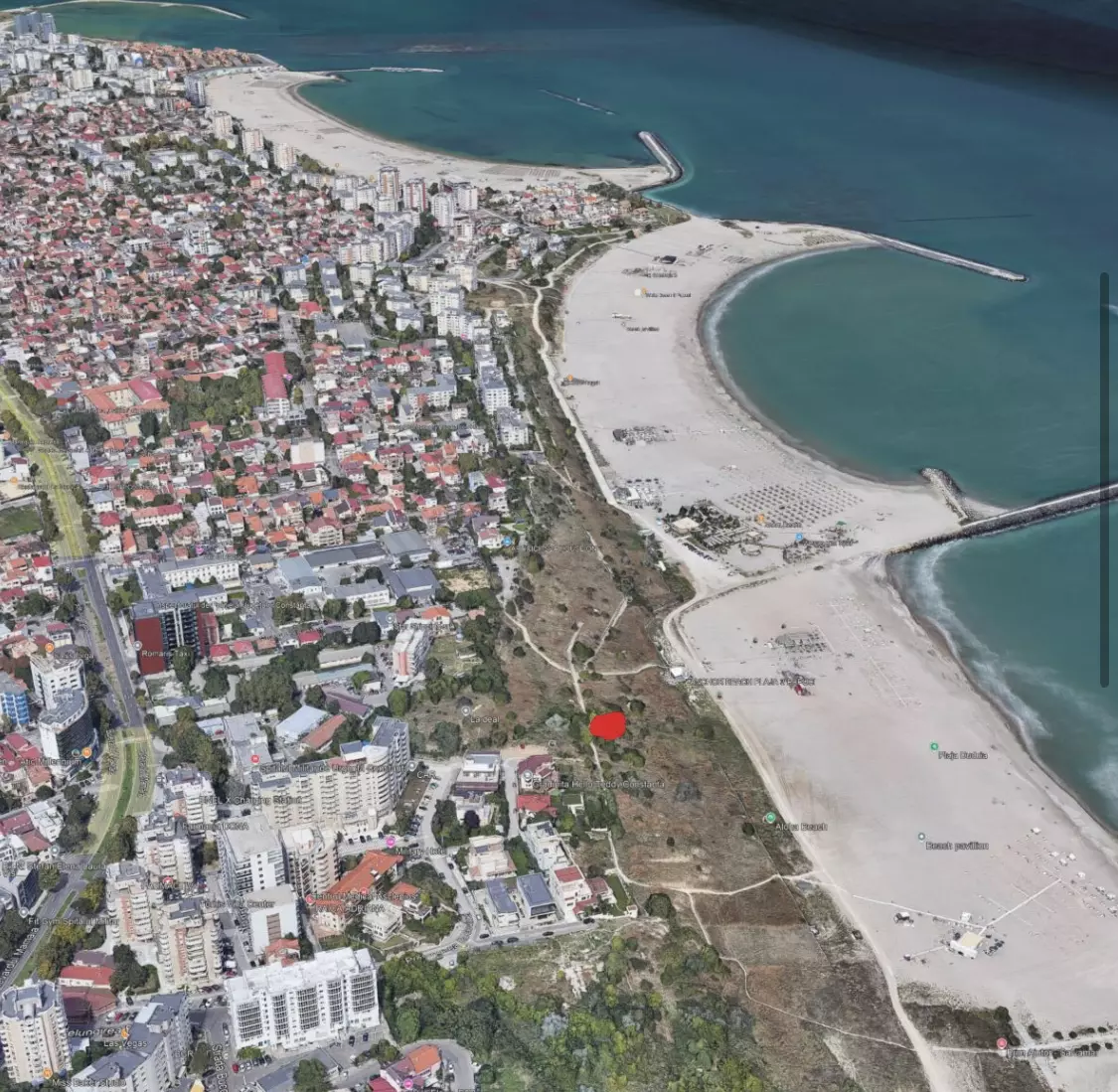 The land sits in an elevated area, which allows for a view of the Black Sea and provides direct access to the beach via a private road. The prime location of this land highlights its proximity to the shoreline and its potential for development, whether for residential or tourism purposes.