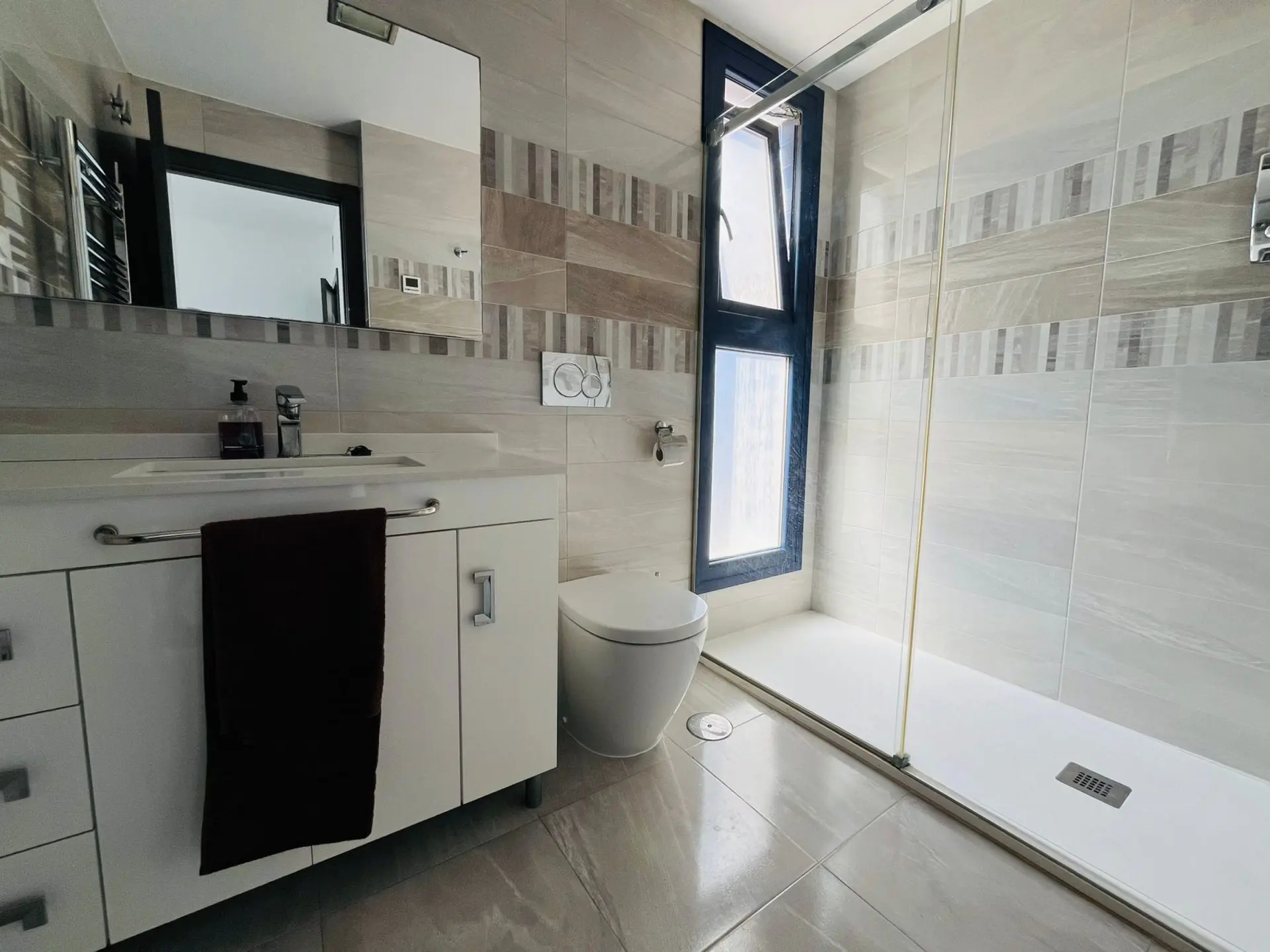 This apartment boasts three bedrooms and two bathrooms, making it suitable for families or those looking for extra space. The open-plan kitchen and living area is bright and designed for easy interaction, allowing for seamless movement between spaces. Step outside to access a sun terrace, ideal for soaking up the views or enjoying outdoor time.