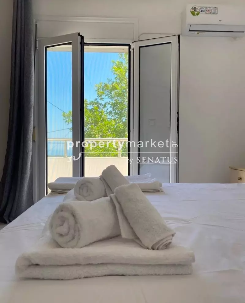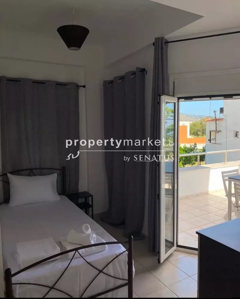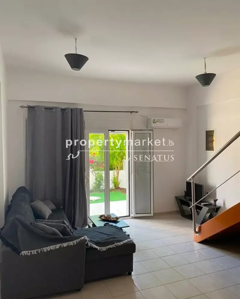 A two-story furnished maisonette for sale in Ierapetra, Males, with a total area of 100.00 sq.m. It consists of 3 bedrooms, a living room, kitchen, bathroom, and WC. Built in 2010, it offers heating, air conditioning, aluminum frames, tiled floors, built-in wardrobes, storage, a garden, and kitchen appliances. On the ground floor, you will find the open-plan living room, kitchen, and sitting area, along with the first bathroom and a storage area. Ascending the internal staircase, there are 3 bedrooms (the first bedroom has a large wardrobe and access to a balcony), and between the bedrooms in the center of the hallway, there is a spacious bathroom. – Price: 185,000 €