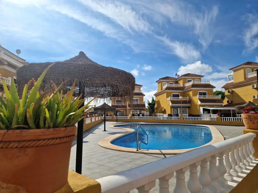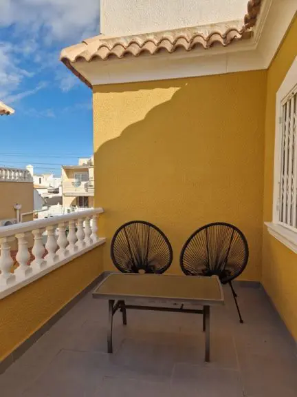 spacious corner house with 3 bedrooms. This fully renovated corner house features a spacious living and dining room with a fully equipped kitchen and utility room. The property has three spacious bedrooms and two modern bathrooms, one of which is on the ground floor. This beautiful property has access to four terraces, perfect for relaxing or entertaining outdoors. Air conditioning is available throughout. The property is sold unfurnished. Discover this charming two-storey semi-detached house, located in a secure private residential complex with a beautiful communal swimming pool and green areas. Ideally located just 6 minutes from the beach, 5 minutes from La Zenia Boulevard shopping centre, 10 minutes from Torrevieja hospital and 2 minutes from local schools. A perfect blend of comfort, light and tranquillity, ideal as a family home, holiday home or investment property on the Costa Blanca. A viewing is highly recommended!