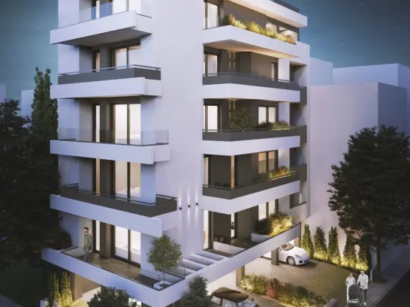 Discover a newly constructed duplex property available for sale in Thessaloniki, measuring 145 square meters. This functional layout spans the second and third floors of the building, providing ample living space.