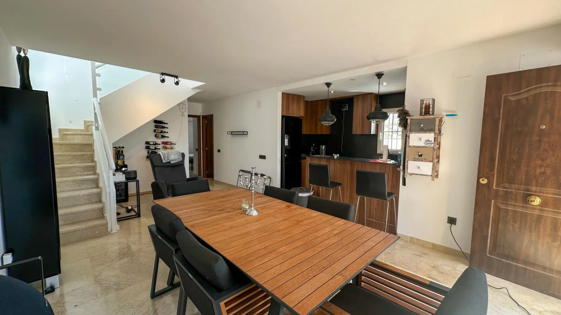 The townhouse has undergone a refurbishment. It contains three bedrooms and two bathrooms. The interior is described as bright and airy.