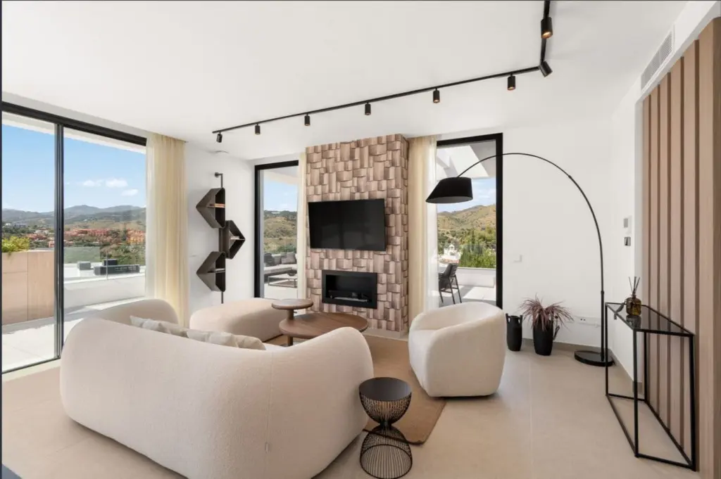 This extraordinary duplex penthouse is located in the prestigious area of Artola Alta, within the renowned enclave of Cabopino, one of the most exclusive and sought-after locations in Marbella East. With a southwest orientation, it enjoys uninterrupted panoramic views of the Mediterranean, Marbella Bay, and the surrounding mountains.