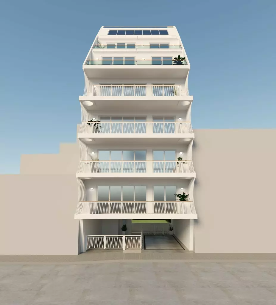 The first floor of this duplex features a living room that is open to the kitchen, creating a practical layout for daily activities. Additionally, there is one shower WC on this level, providing convenience for both residents and guests.