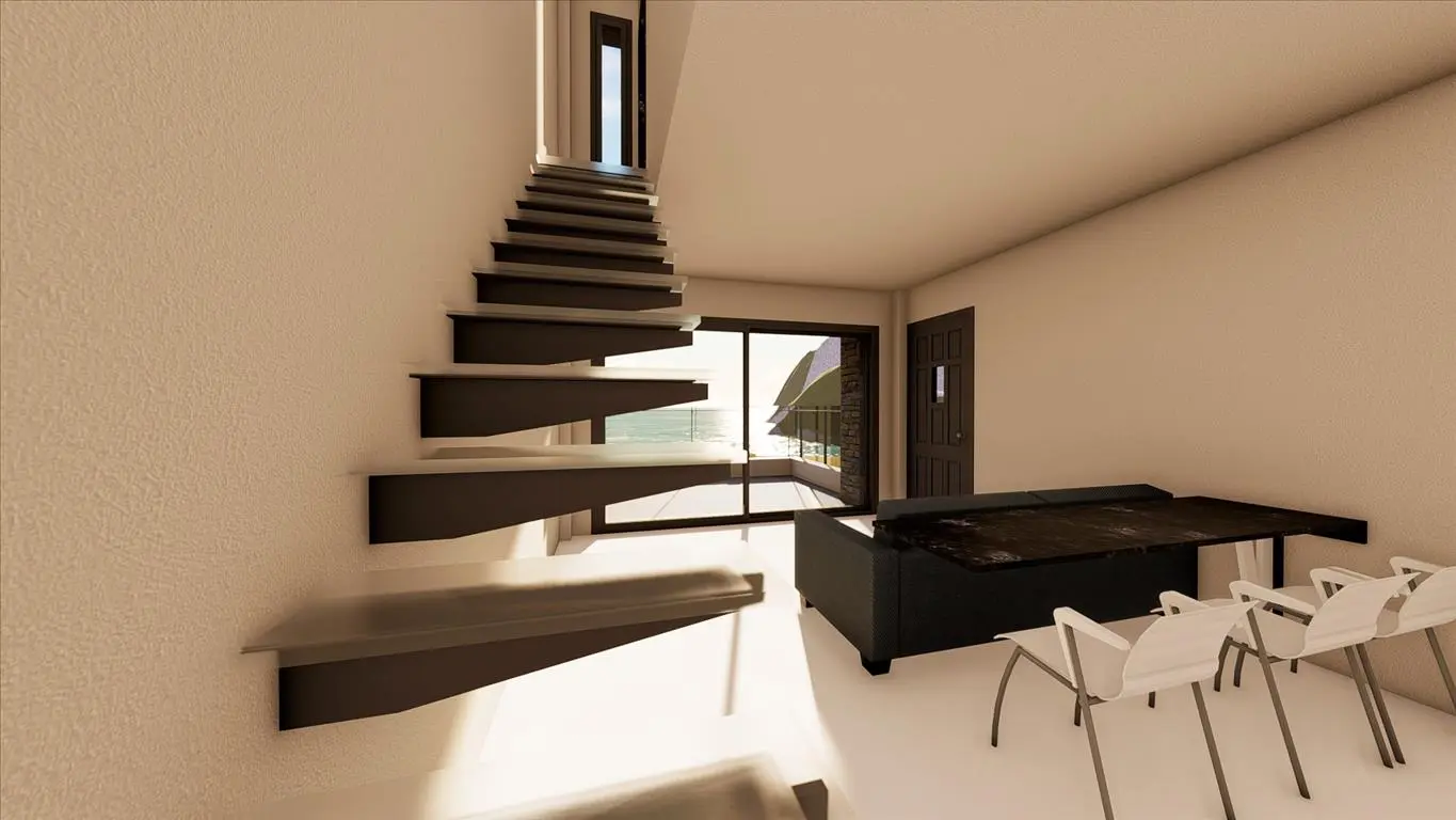 The first floor comprises a living room with an integrated kitchen, making it functional for cooking and socializing. This level also includes a bathroom to serve your daily needs.