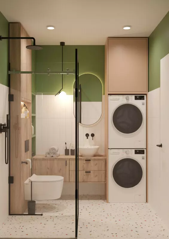 The first floor of the duplex features a living room that is connected to a kitchen area. This open-plan design allows for a practical living space, making it easy to navigate between cooking, dining, and relaxation. On the second floor, you’ll find one bedroom along with a shower toilet, which adds convenience for daily routines.
