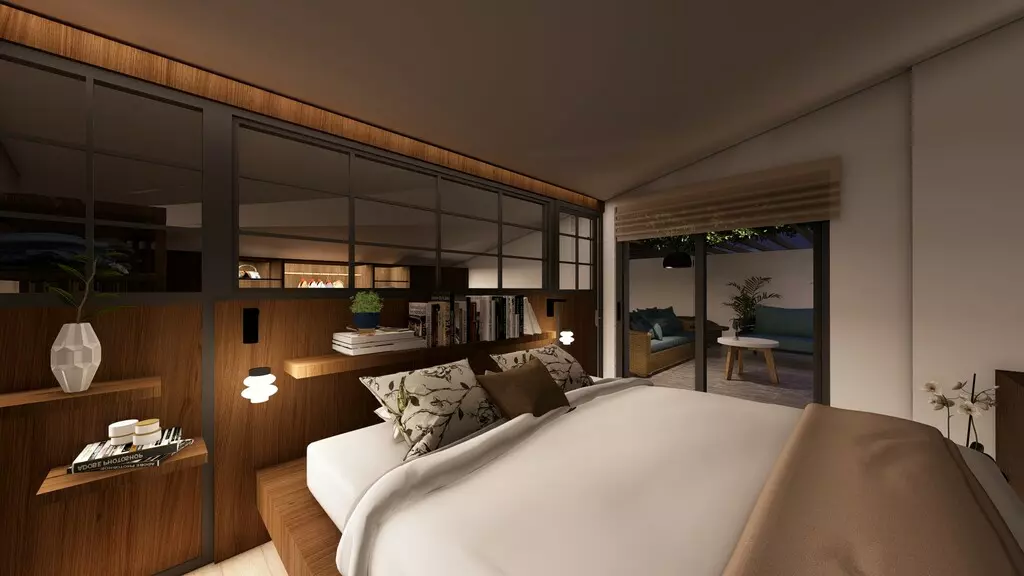 The duplex occupies the 2nd and 3rd floors of the building. The layout is simple yet functional. The 2nd floor features a living room combined with a kitchen area and includes a shower WC. Moving up to the 3rd floor, you will find a single bedroom.