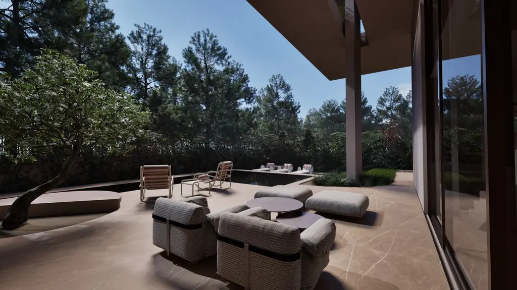 The first floor houses three bedrooms, providing space for family, guests, or even a home office setup. Each bedroom is accompanied by a bathroom, ensuring privacy and accessibility. This layout is practical for anyone needing personal space, whether for individuals or a family group.